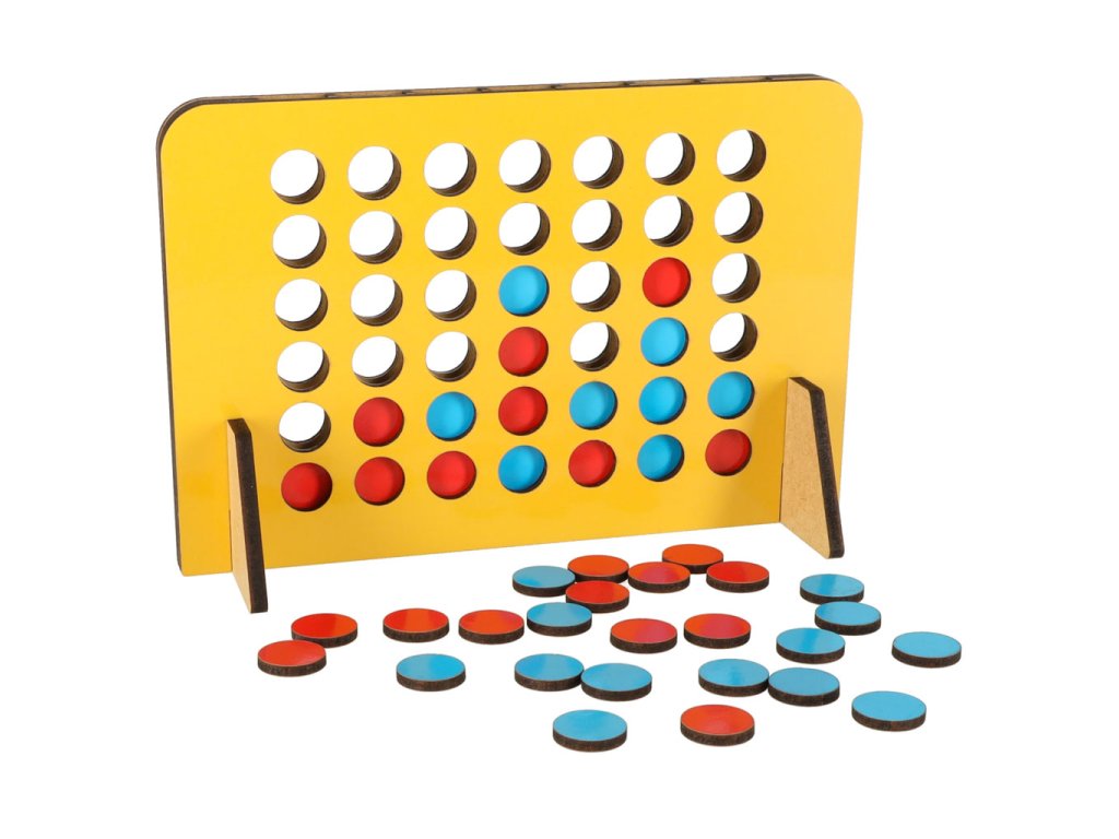 Jedinečná dřevěná hra pro 2 osoby. Cílem hry je uspořádat čtyři žetony stejné barvy do řady (vertikálně, horizontálně nebo diagonálně).