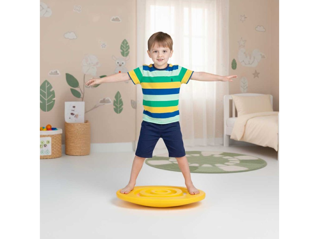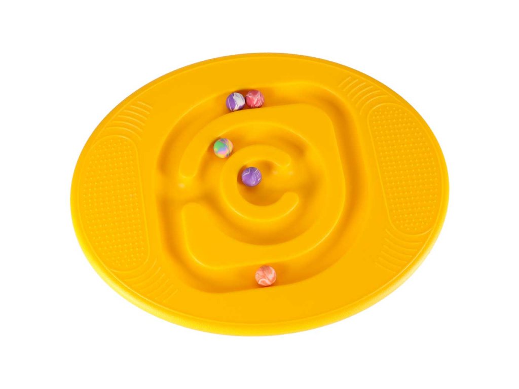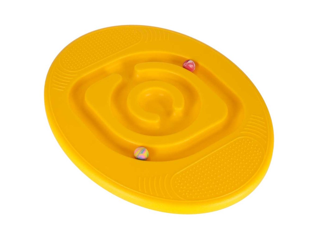 Balanční kladina je vyrobena z odolného plastu ve žluté barvě a má maximální nosnost až 90 kg, což zaručuje dlouhotrvající zábavu i při těch nejintenzivnějších aktivitách. Labyrint umístěný uprostřed balanční kladiny je atraktivním doplňkem, který dítě ještě více zaujme. Dřevěné kuličky je třeba nasměrovat do středu bludiště vyvažováním desky. Další hrbolky na povrchu stimulují hmat a zajišťují bezpečnost tím, že zabraňují uklouznutí.