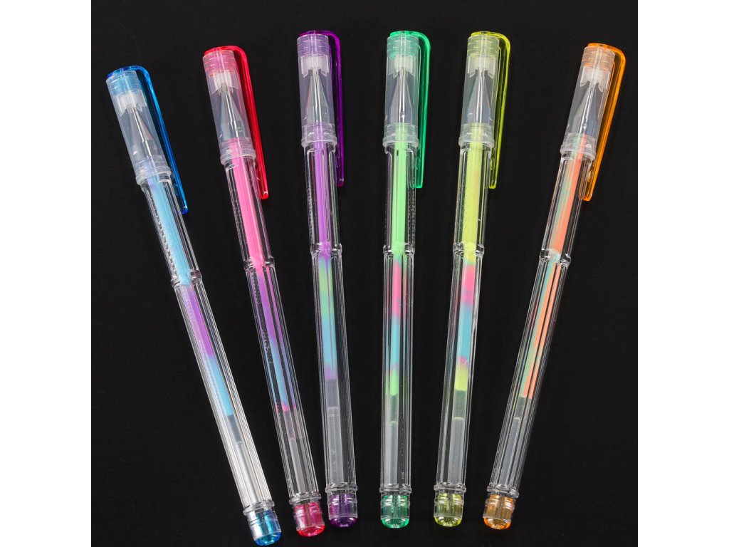 6 gelových per s barevnými náplněmi
