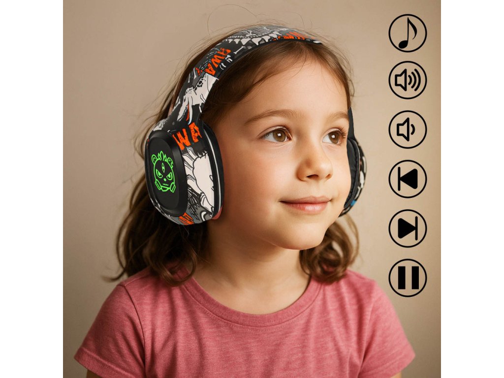 Bezdrátová sluchátka bluetooth s osvětlením se vyznačují originálním designem. Barevné pouzdro s multimediálními prvky zachovanými v moderní estetice přitahuje pozornost a vzbuzuje zájem dětí i dospělých. Ke kvalitě slyšitelného zvuku pozitivně přispívají 50mm měniče. Vestavěná tlačítka umožňují pohodlné ovládání hlasitosti nebo změnu skladby bez přímé interakce s externím přehrávačem.