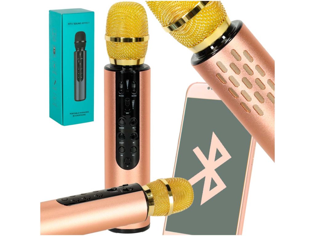 Bezdrátový karaoke mikrofon Bluetooth zlatý