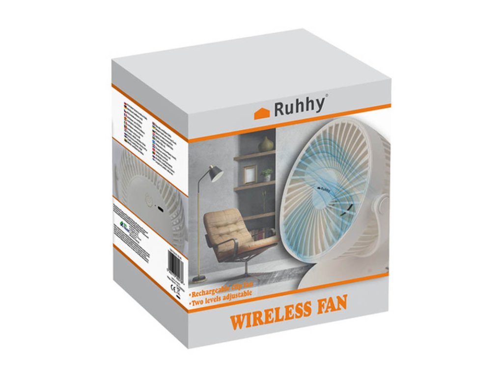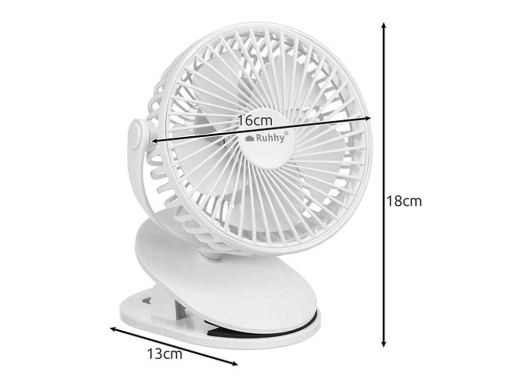 🌬️ Bezdrátový ventilátor bílý Ruhhy 25566 – přenosný stolní ventilátor s klipem a USB-C nabíjením
