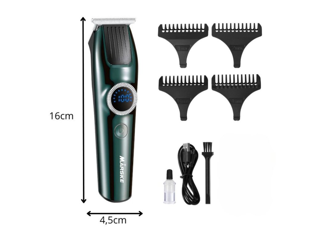 Bezdrátový strojek na vlasy USB-C s LCD a 4 nástavci, zelený