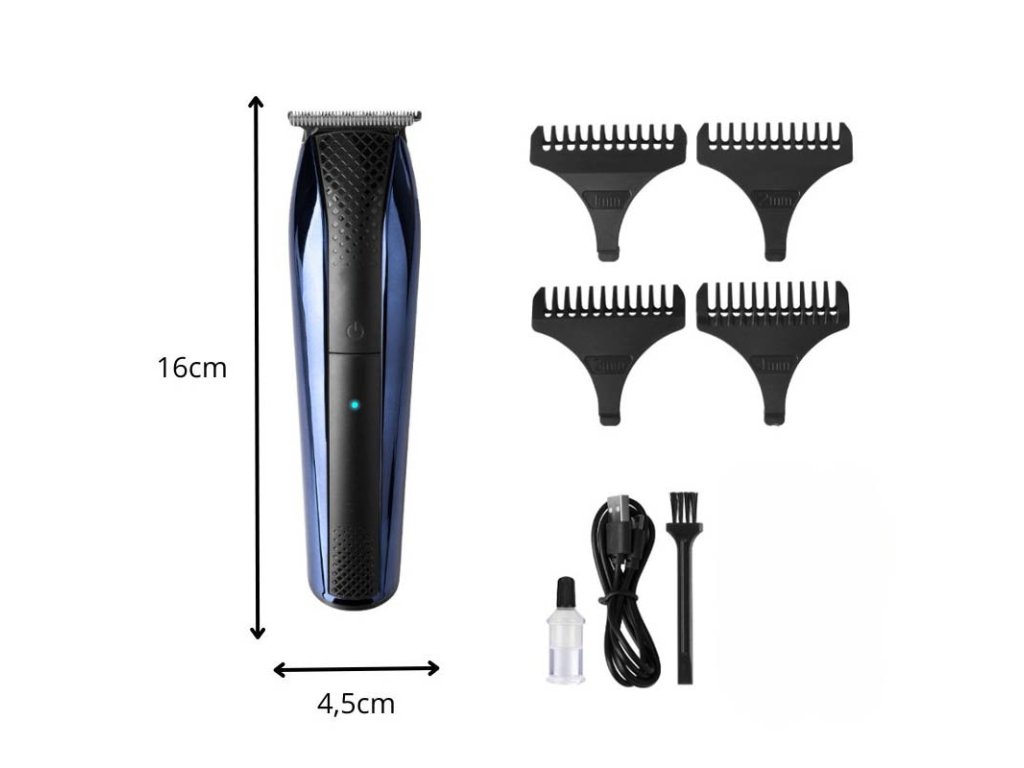 Bezdrátový zastřihovač / holicí strojek na vlasy s nástavci (USB-C), modrý