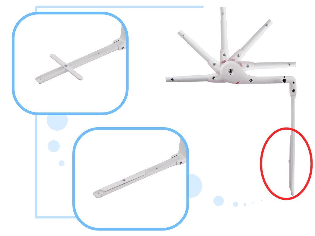 Montáž zábradlí je neuvěřitelně snadná! Začněte montáží tak, že vložíte příslušné části rámu do otvorů v lemu z textilní síťoviny. Pak stačí zvednout matraci postele a vložit pod ni vyčnívající základy zábradlí!