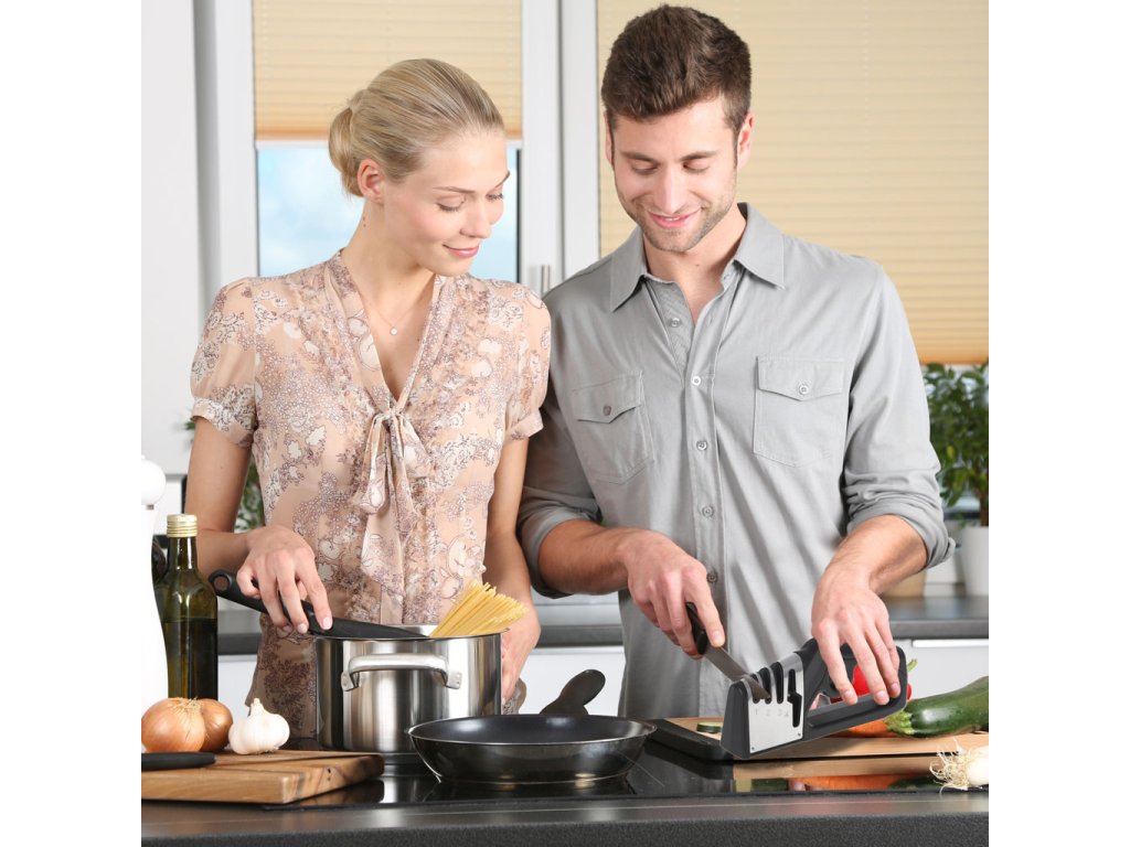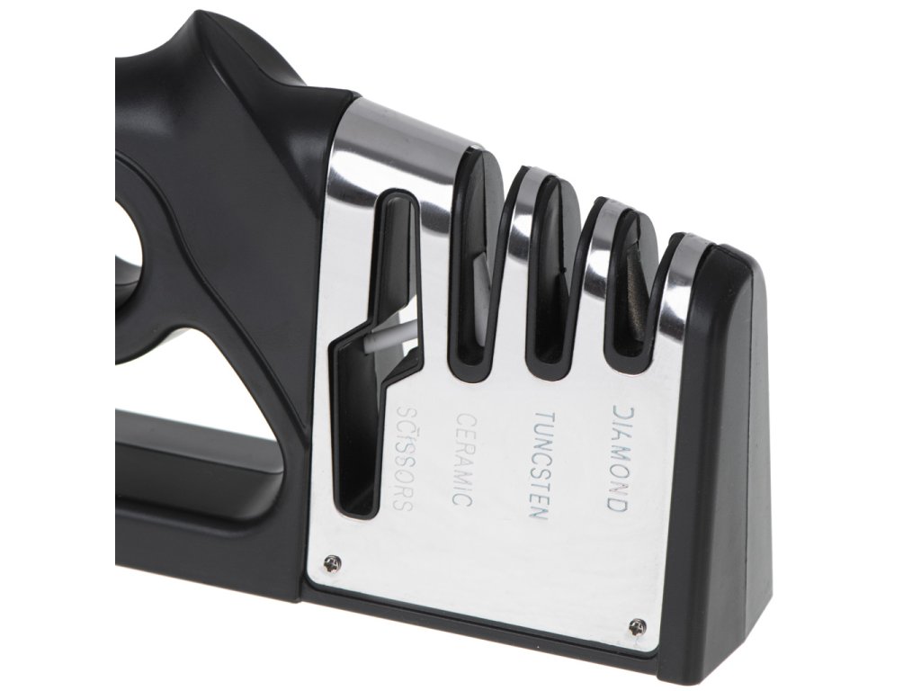 Ostřič je pokročilý nástroj, který zajistí správné a komplexní naostření i těch nejtupějších a nejzanedbanějších čepelí. Díky až třem otvorům pro broušení můžete své nože různými způsoby vylepšit. Přídavná štěrbina na nůžky umožňuje také broušení tupých nůžek. Přesvědčte se sami, jak rychle můžete vrátit nůžkám a kuchyňským nožům jejich čistotu a ostrost.
