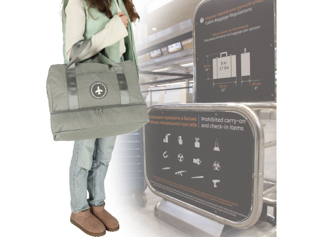 Cestovní taška do příručního zavazadla 39 x 18 x 30 cm šedá