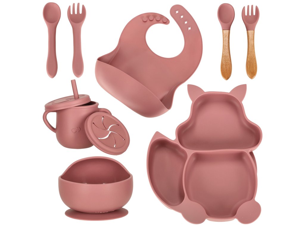 SILIKONOVÉ NÁDOBÍ PRO DĚTI VEVERKA SADA 9 KUSŮ TMAVĚ RŮŽOVÁ