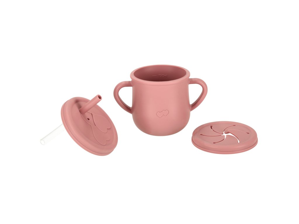 Kelímek má dvě funkce: Hrneček s brčkem na oblíbený nápoj batolete nebo jako nádoba na svačinu, která bude chráněna před rozlitím.