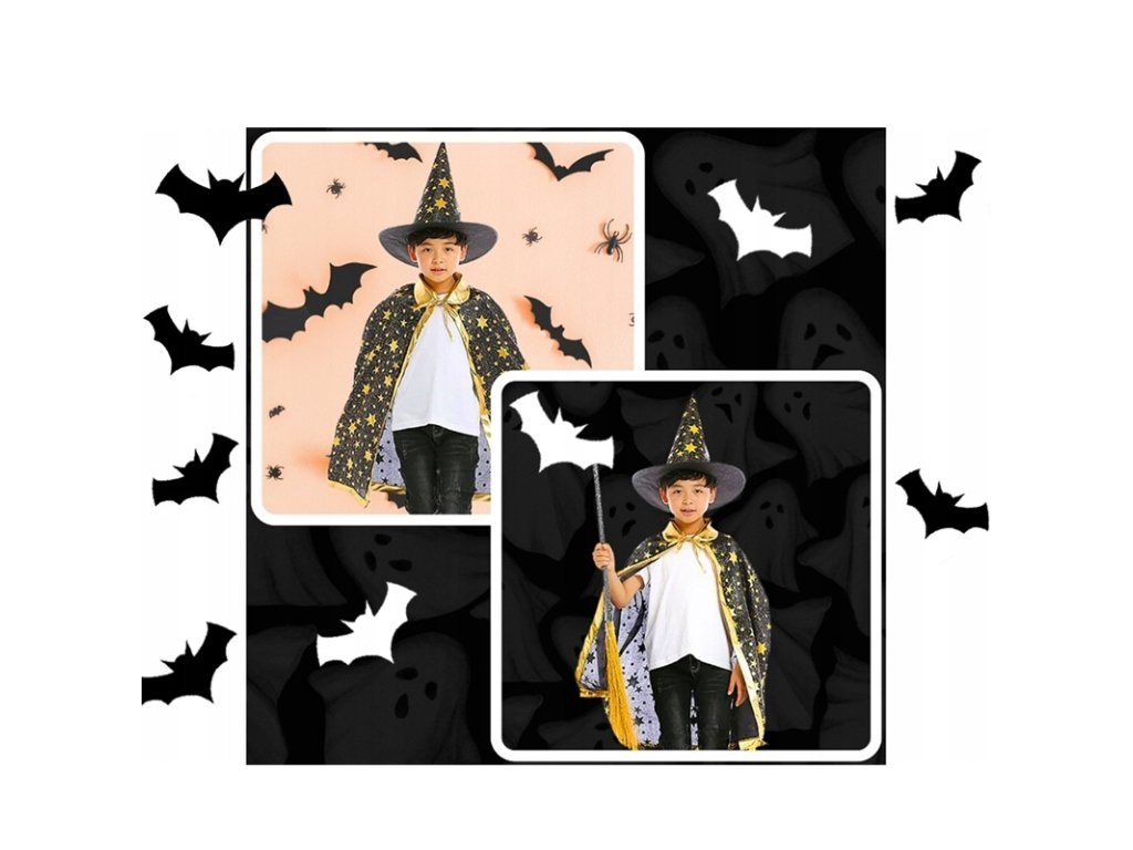 | Typ produktu | Dětský čarodějský kostým (pláštěnka + klobouk) |