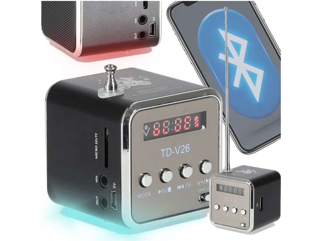 DOBÍJECÍ RÁDIO PŘENOSNÝ REPRODUKTOR BLUETOOTH LCD TD-V26