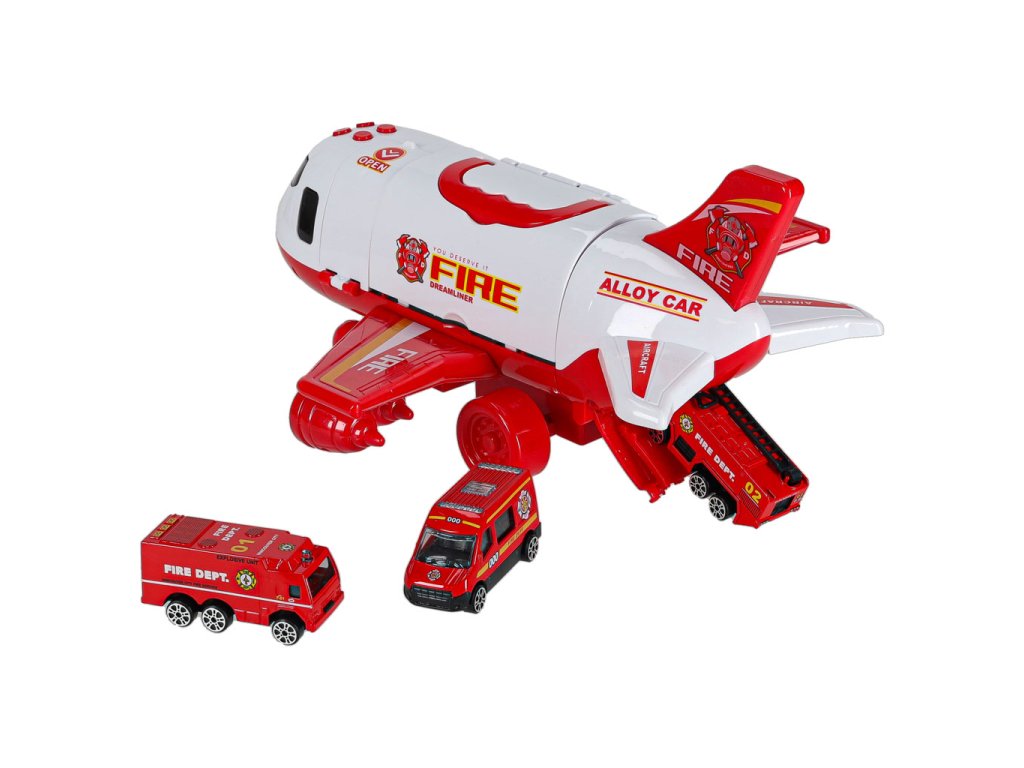 Letadlo jelze otevřít i ze strany, aby se s hračkami uvnitř lépe manipulovalo.