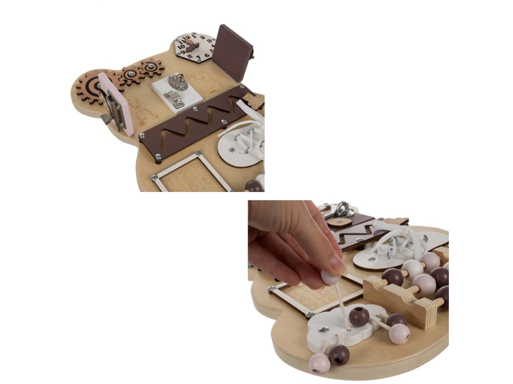 Dřevěná manipulační senzorická deska - medvídek montessori 14 v1