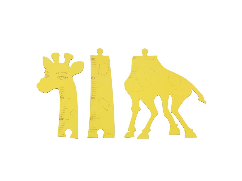 Dřevěný výškoměr ve tvaru žirafy bude pro děti i rodiče zábavou. Bude skvělou dekorací do každého dětského pokoje. Výška metru je 125 cm. K výrobku je přiložena tabule o rozměrech 32x44 cm. Celá sada je vyrobena ze dřeva.
