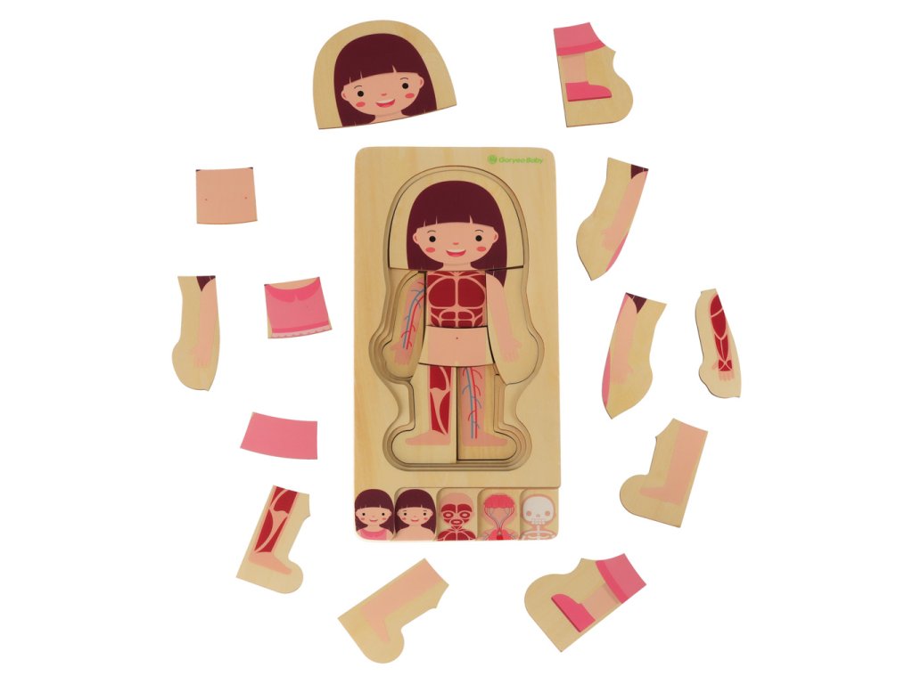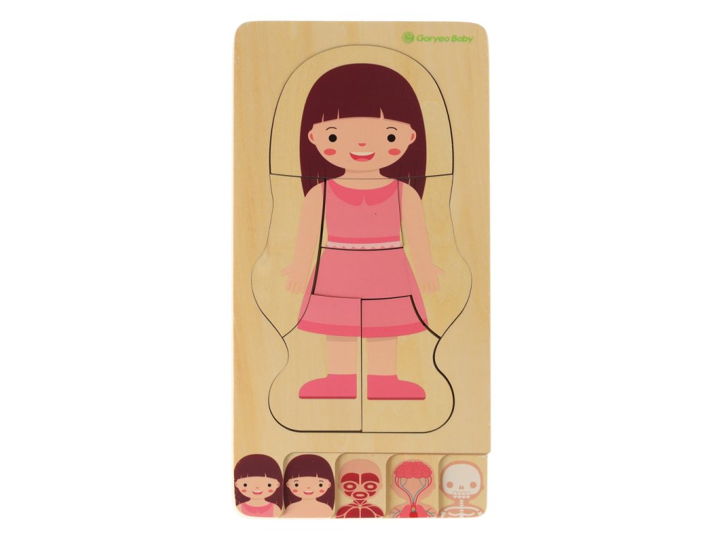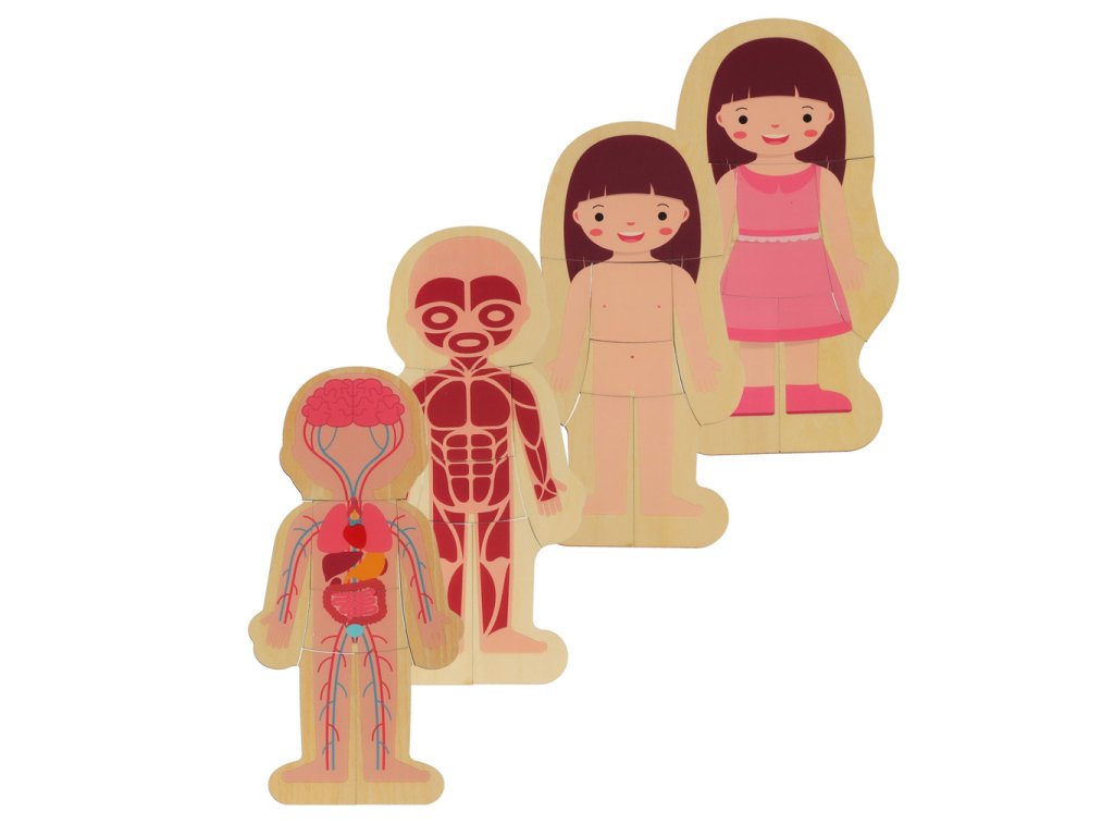Dřevěné vrstvené puzzle tělesné stavby montessori dívka
