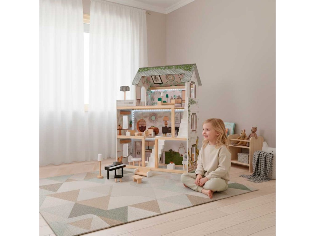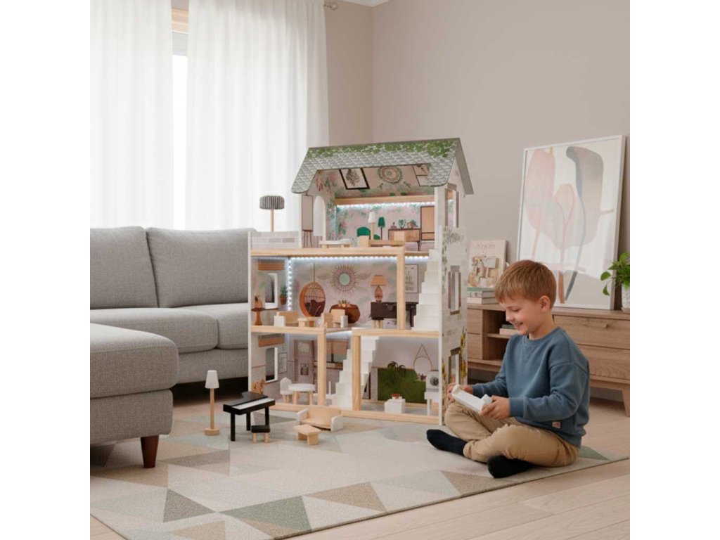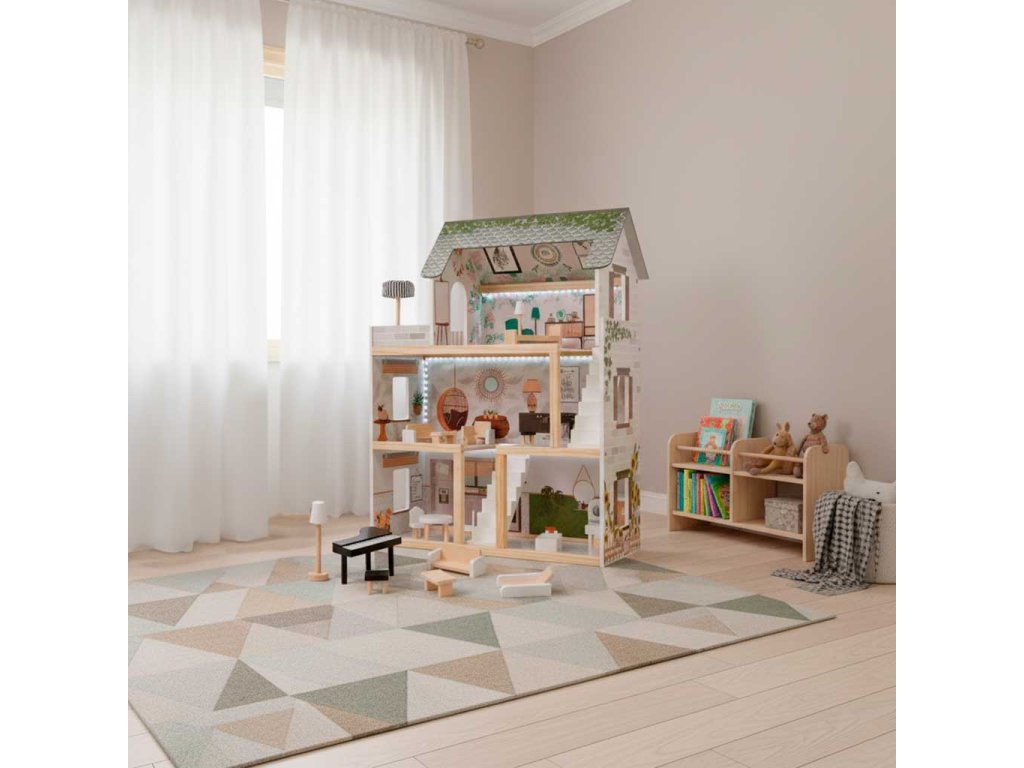 Dřevěný domeček pro panenky LULILO FLORO boho LED