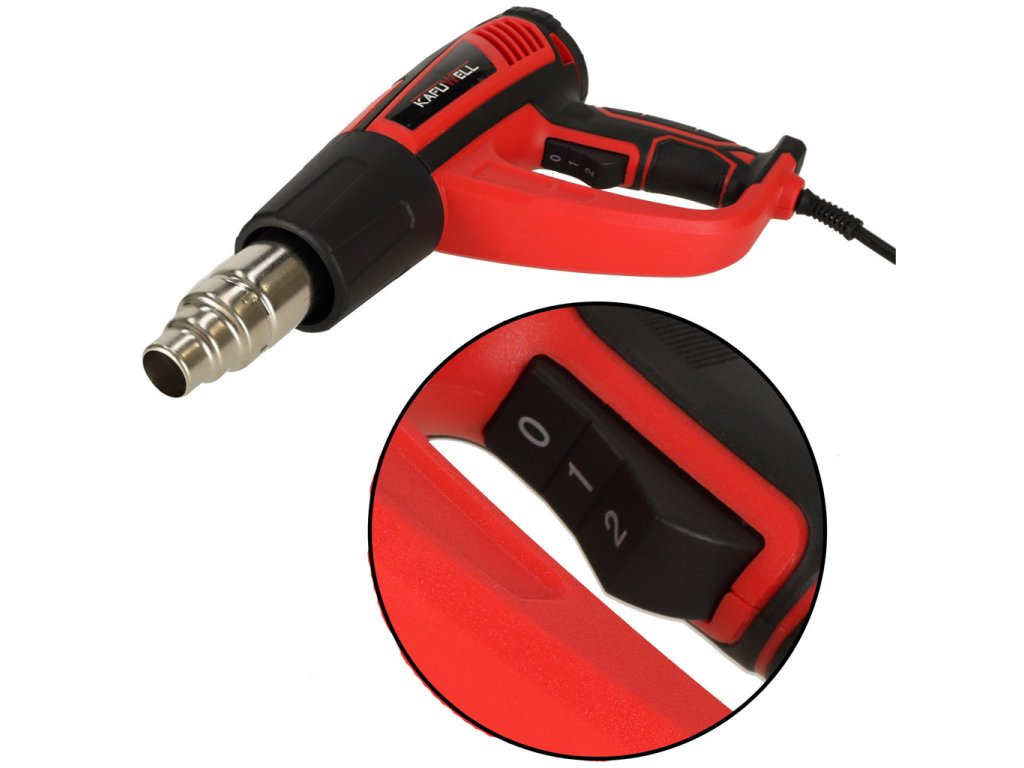 Elektrická opalovačka dosahuje maximální teploty 600 °C, ale můžete ji plynule regulovat podle typu materiálu, se kterým pracujete. Dva provozní režimy umožňují zvolit teplotu od 0 do 50 °C a od 50 do 600 °C, čímž máte proces pod kontrolou. Průtok vzduchu je nastavitelný v rozmezí 300 až 500 l/min.