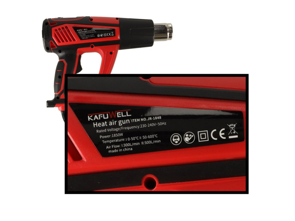 Elektrický topný hořák s regulací teploty 0-600 stupňů C průtok vzduchu 300-500 l/min + 4 vyměnitelné hroty 1850W