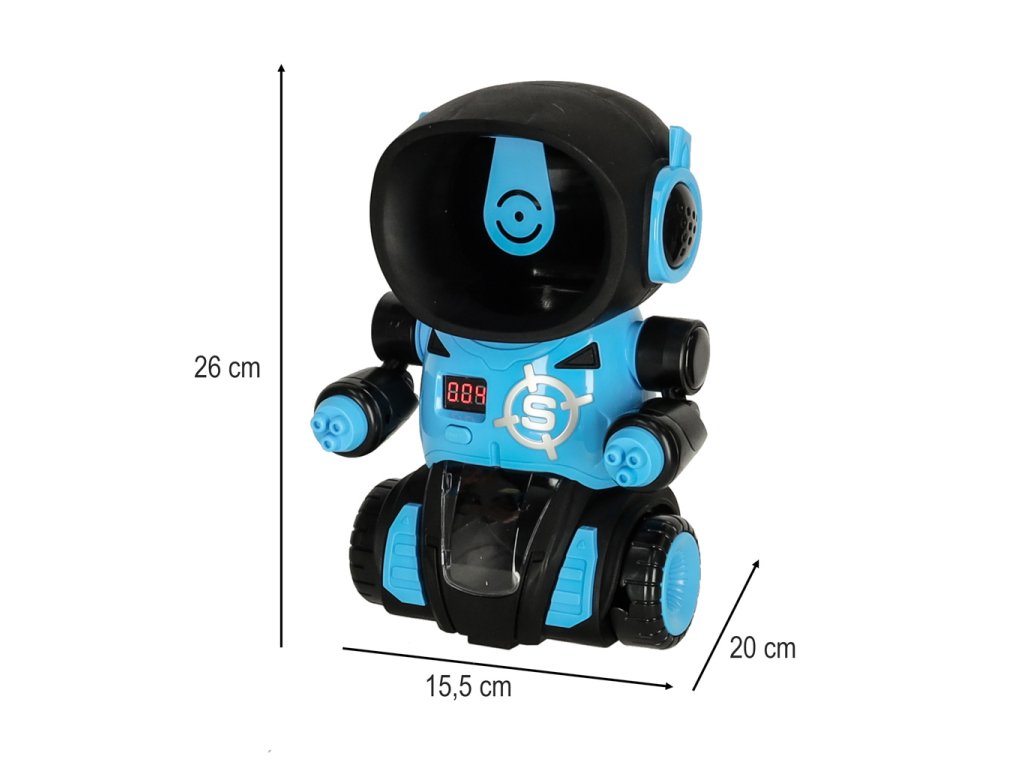 Cílem hry je zasáhnout pěnové kuličky přímo do středu hlavy robota. Dítě má k dispozici 24 pěnových míčků, které musí vystřelit z plastové pistole.