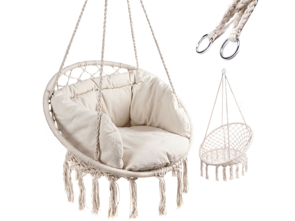 S houpací sítí ve tvaru křesla je relaxace čistým potěšením! Nechte se unášet sny, uvařte si oblíbený čaj a vezměte do ruky poutavou knihu.