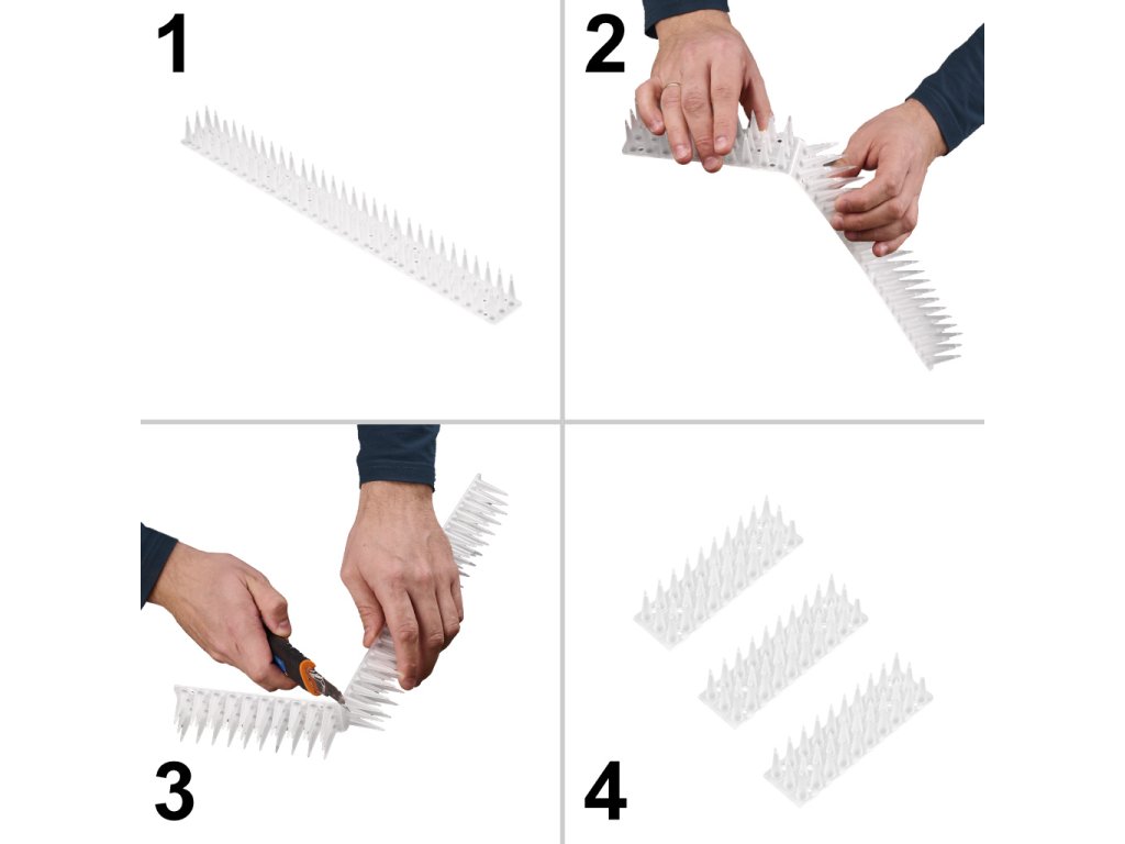 Instalace hrotů je rychlá a bezproblémová. Hroty proti holubům lze snadno instalovat pomocí montážního lepidla nebo upínacích pásků, což zaručuje stabilitu a dlouhodobý účinek.