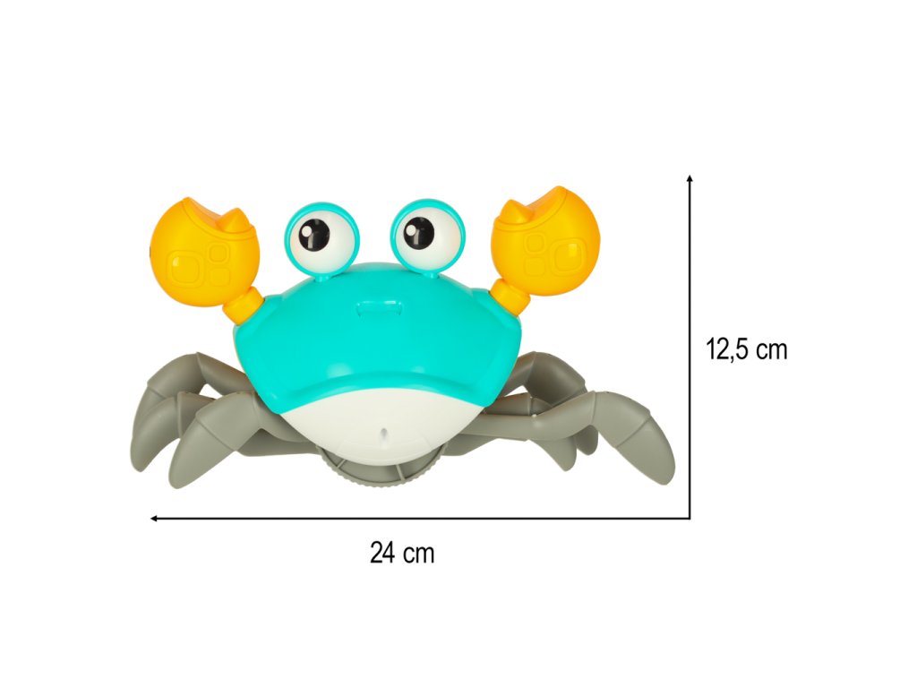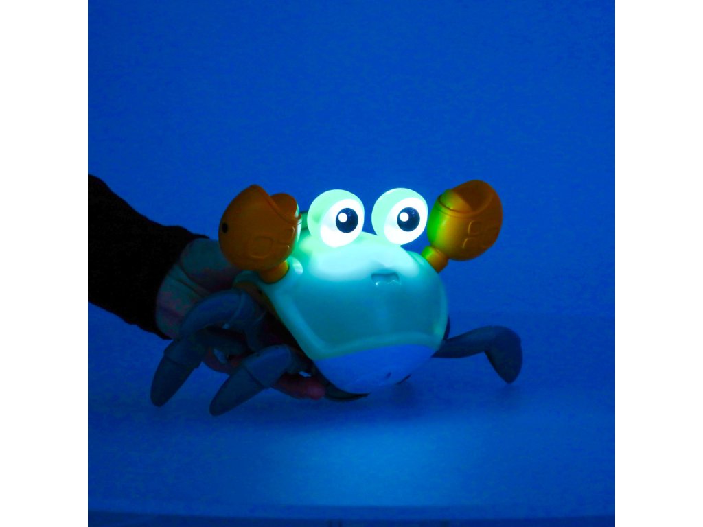 Kromě plazení hraje červený krab také hudbu - během hry tak bude stimulován i sluch dítěte.