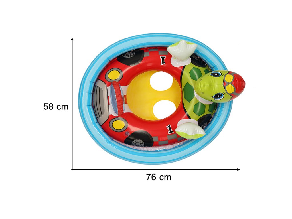 Barevný plavecký kruh s motivem přátelské želvy a auta jistě povzbudí vaše děťátko, aby vlezlo do vody a vydalo se na vodní dobrodružství! Navíc takový rozkošný tvar kolečka jistě přitáhne spoustu pozornosti!