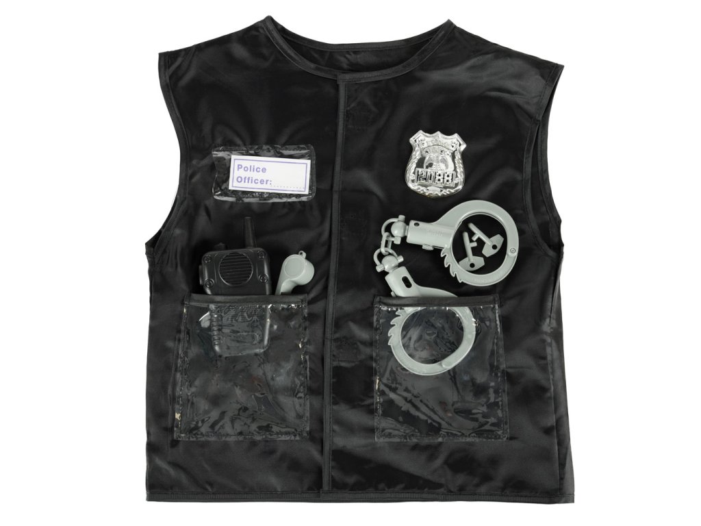 Sada obsahuje také další předměty, jako je píšťalka, pouta a vysílačka! Skvěle doplní kostým!