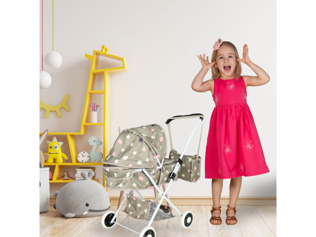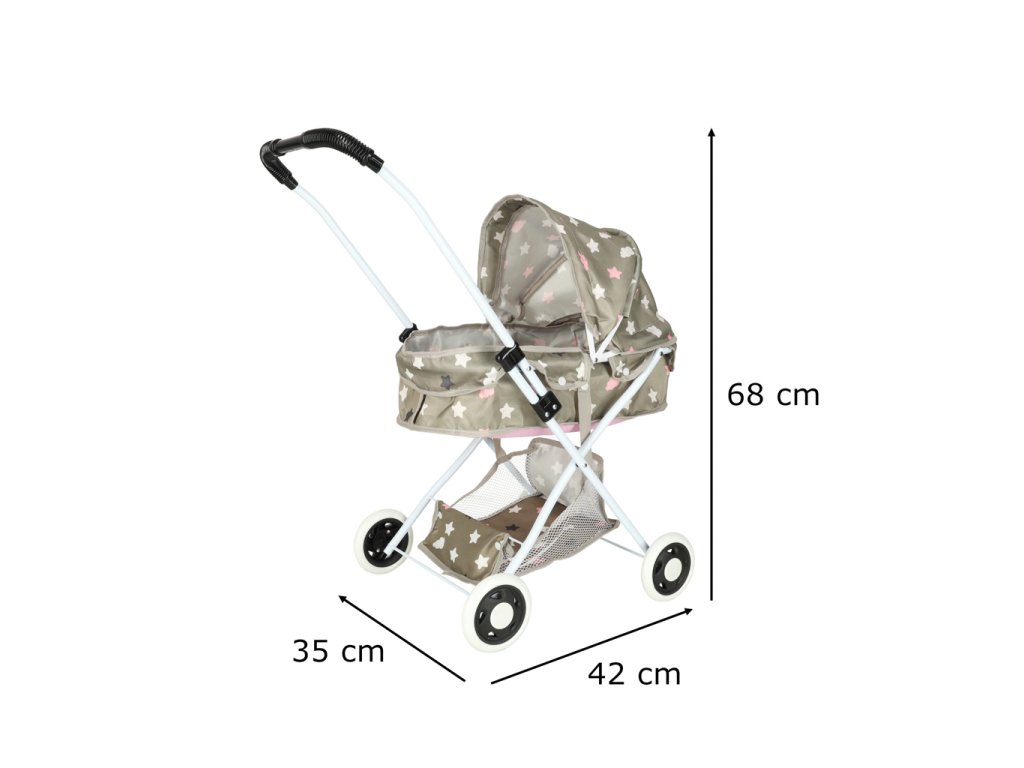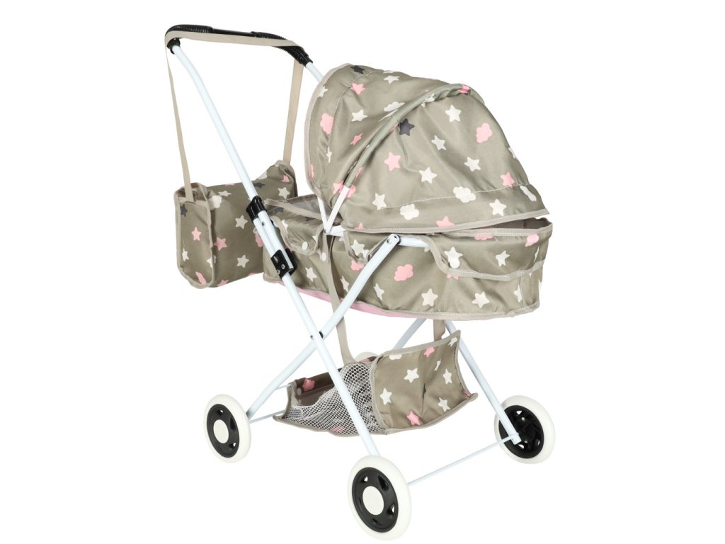 Tradiční kočárek umožňuje dítěti panenku položit, přikrýt ji dekou a pečovat o ni jako o skutečné miminko. Kočárek pojme panenku o délce až 45 cm a je vhodný na procházky po domě nebo na dvoře. Ve spodní části je navíc praktická polička na nejnutnější drobnosti a součástí je také praktická taška přes rameno. Jedná se o ideální volbu pro děti, které sní o svém prvním kočárku - pohodlný, prostorný a multifunkční.