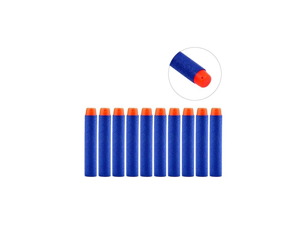 Sada střeliva pro odpalovací zařízení NERF.Šípy jsou vyrobeny z plastu podobného pěně. Sada obsahuje 10 nábojů. Rozměry: délka: 7,2 cm, průměr: 1 cm, barva: modrá.