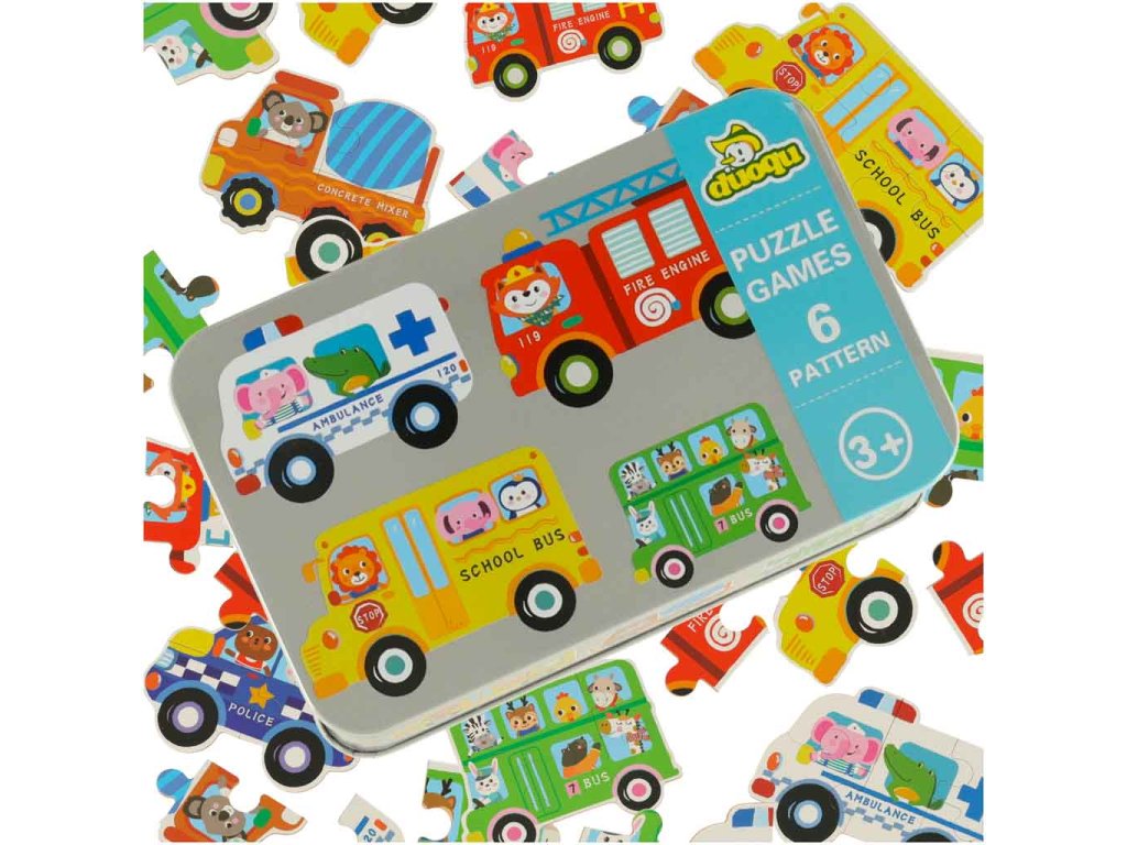 Konzervy na puzzle vozidla 30 skládaček