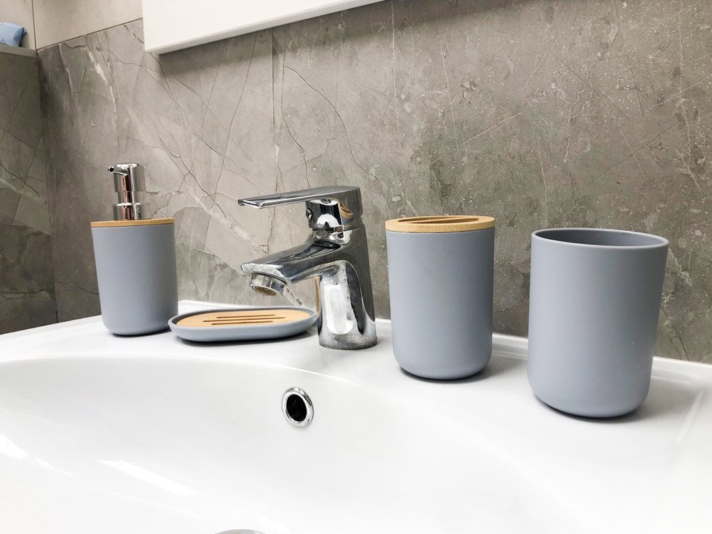 klasický design - díky šedé barvě se sada dokonale hodí do každé koupelny, ať už moderní, nebo klasické