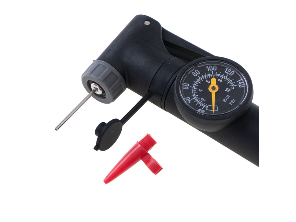 Hustilka je vybavena manometrem, pomocí kterého můžete rychle změřit tlak v pneumatikách a nastavit jej na požadovanou úroveň v závislosti na typu kola.