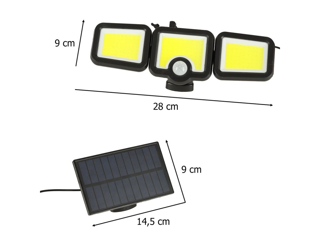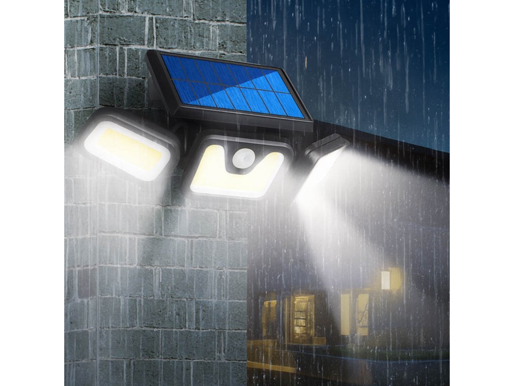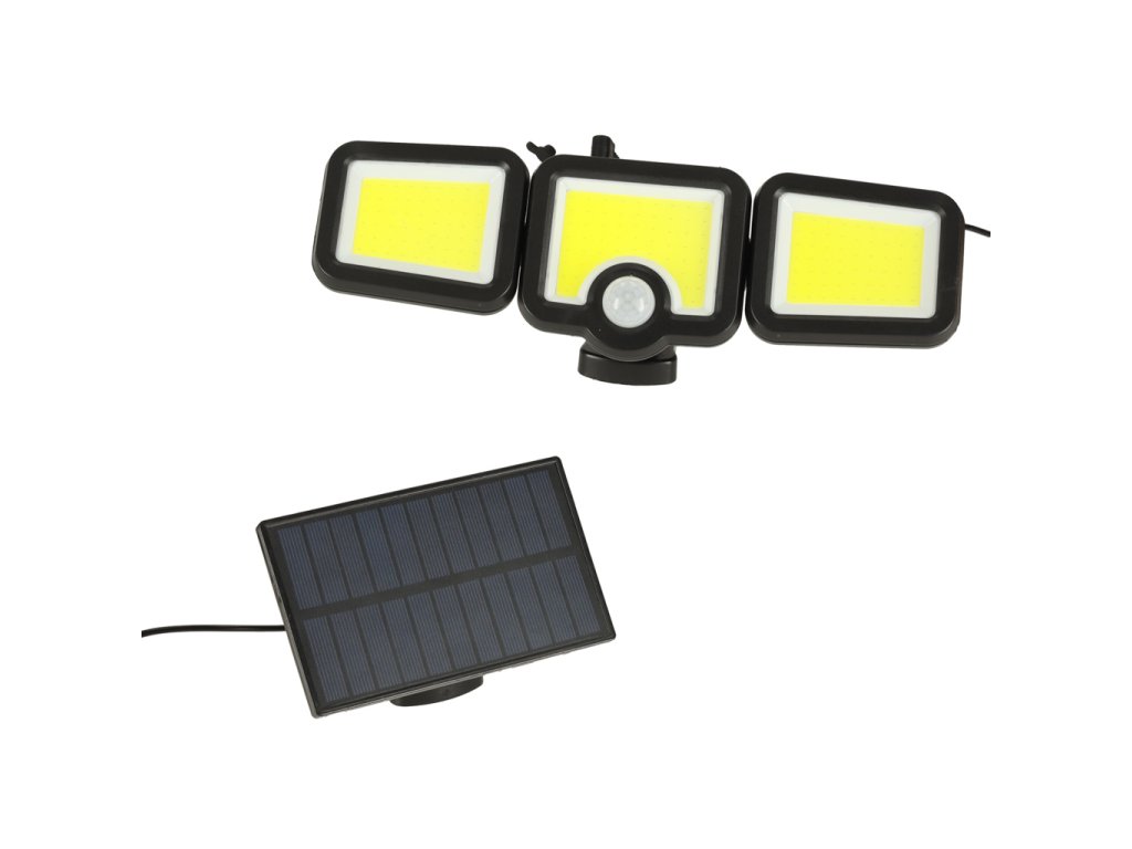 Solarna lampa z trzema połączonymi reflektorami zapewnia szeroki obszar oświetlenia otoczenia. Działa w dobrze nasłonecznionym miejscu, skąd panel będzie czerpał stosowną ilość energii do emitowania światła w nocy.
