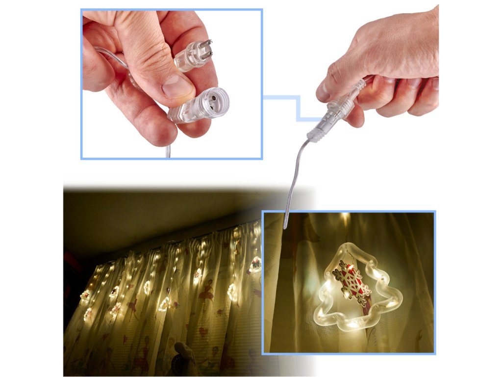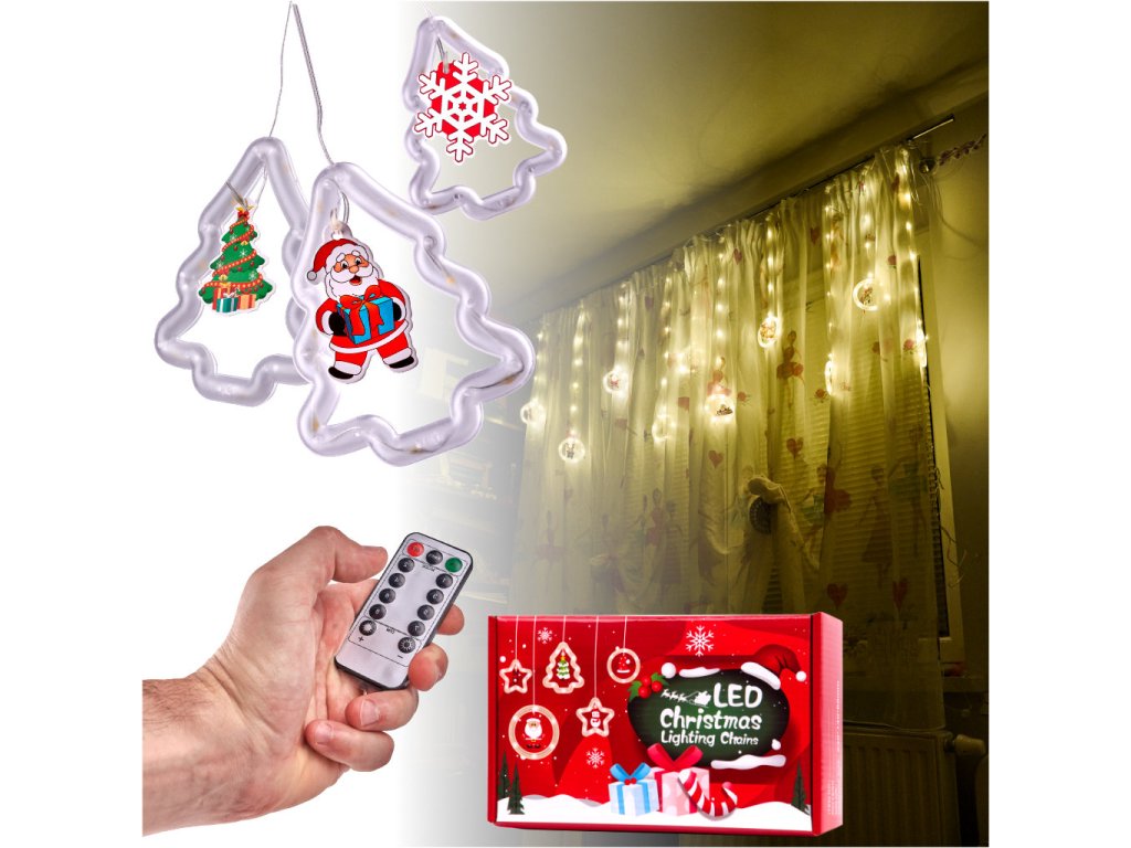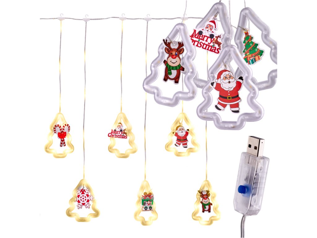 Světelný závěs s barevnými vánočními postavičkami vytvoří ve vašem domově během Vánoc útulnou atmosféru! Celková délka závěsu je až 3 metry. Je napájen přes USB port a má až 8 různých režimů osvětlení. Barevné obrázky navodí sváteční atmosféru!