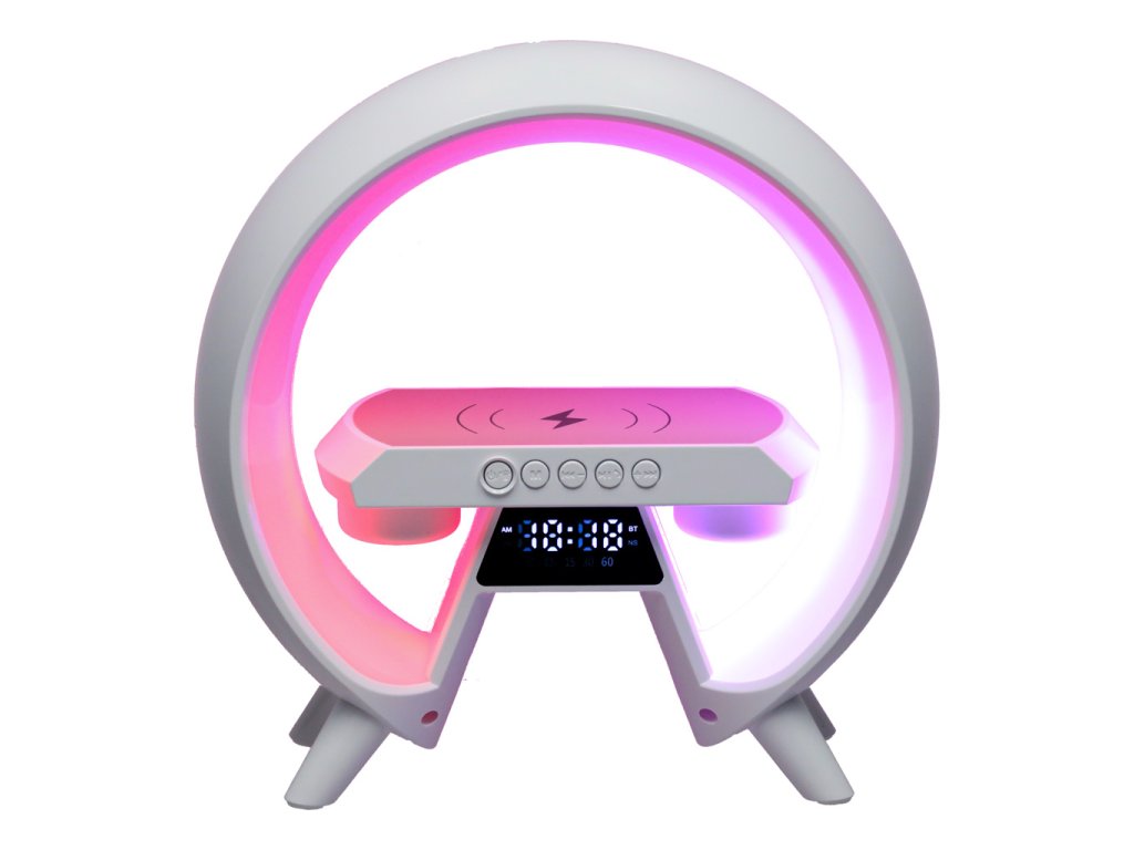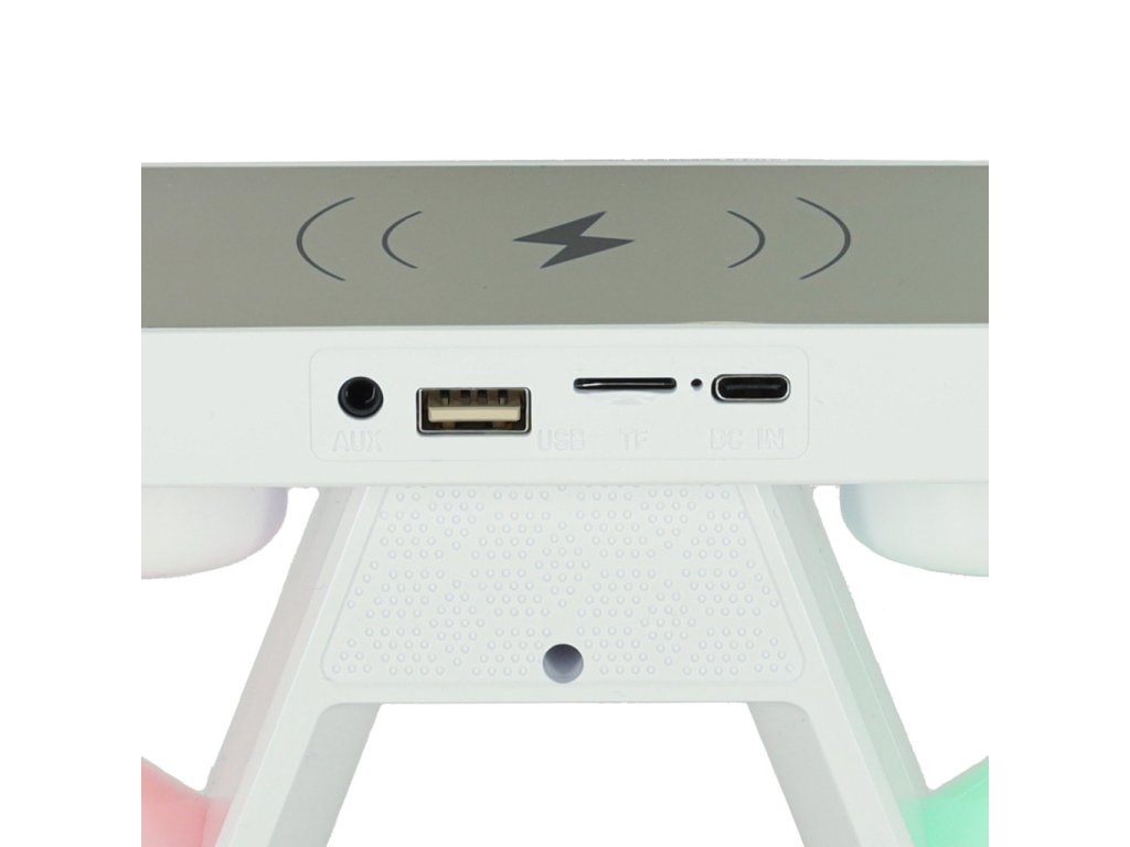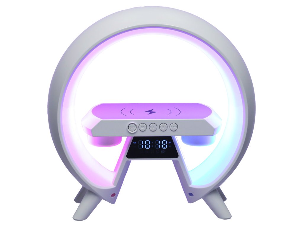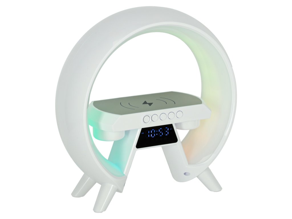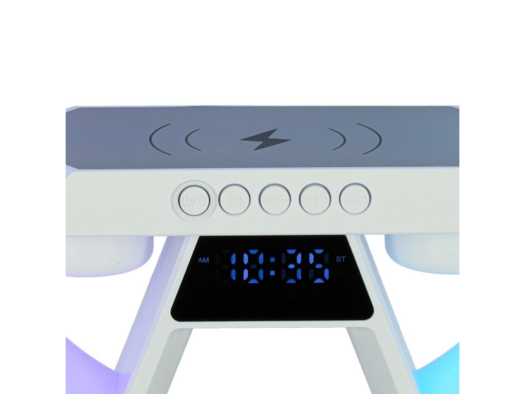 Funkce: BT, FM, SD karta, AUX, bezdrátové nabíjení, RGB, hodinky, budík