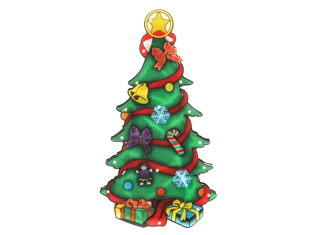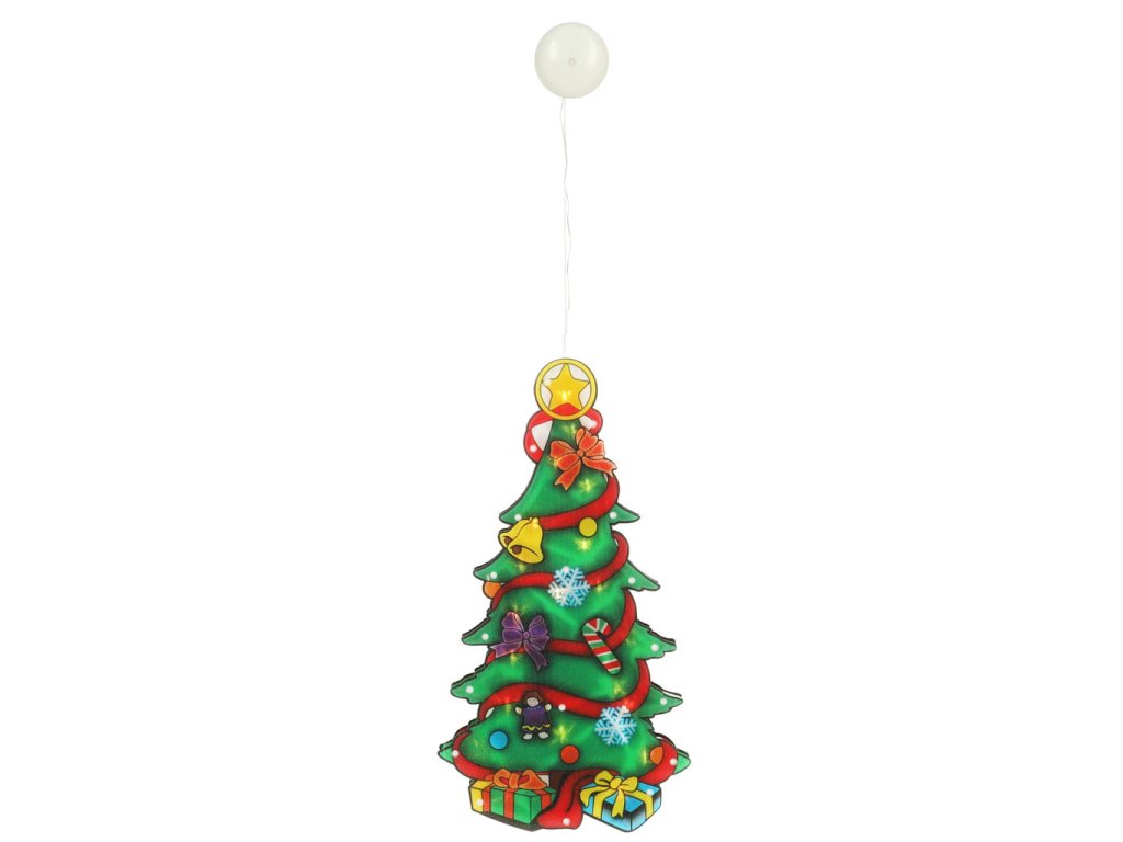 Fantastická vánoční dekorace ve tvaru vánočního stromku s LED světýlky. Vnese do vás kouzlo Vánoc. Bude se krásně vyjímat ve výloze. Napájení: 3 baterie AAA. Upevnění: pomocí přísavky. Celková délka: 53 cm. Rozměry vánočního stromečku: Rozměry: 21 cm x 45 cm.