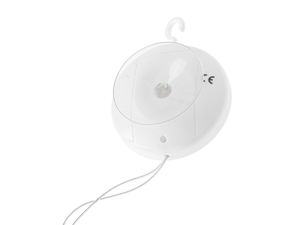 Ozdoba je napájena bateriemi, takže ji lze snadno zapnout kdekoli bez zbytečných kabelů. Baterie jsou navíc zakryté víkem, což zaručuje bezpečnost dětí. A samotný box baterie je také držák vybavený přísavkou.