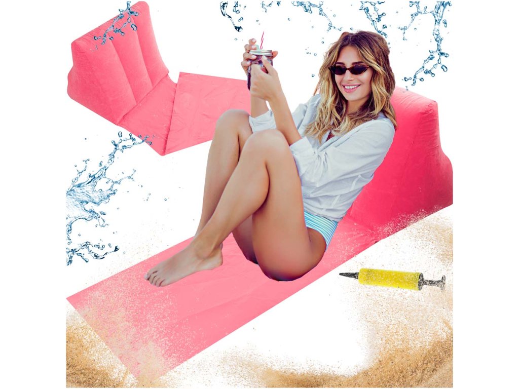 Vyměňte obyčejné plážové deky a podložky za nafukovací plážové lehátko, na kterém si nejen protáhnete nohy, ale také si pohodlně odpočinete na měkkém polštáři!