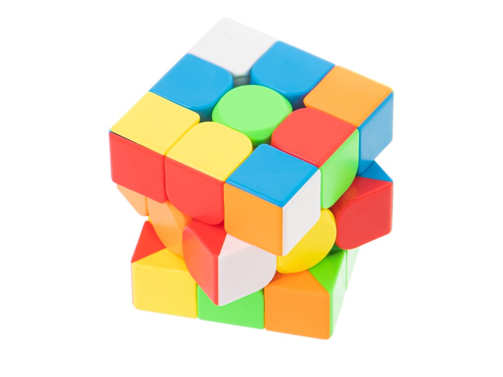 Úrovněmi lze libovolně otáčet a měnit uspořádání barevných kostek.
