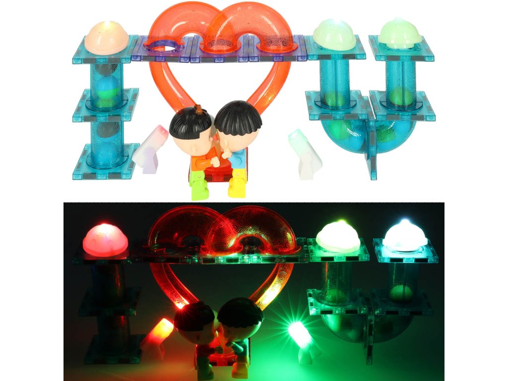 Tato sada je však jedinečná - obsahuje mnoho svítících prvků, včetně kuliček, které po uvedení do pohybu začnou svítit. Výsledkem je, že po sestavení dráhy vytvoří kuličky, které se po ní pohybují, nádhernou světelnou show!