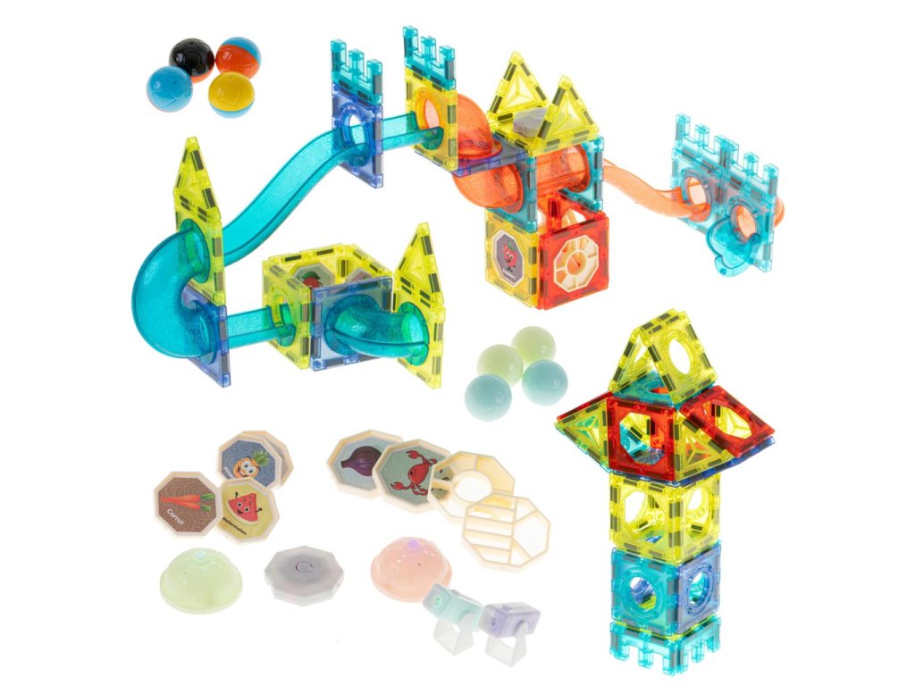 MAGNETICKÉ MRAMOROVÉ BLOKY SVÍTÍCÍ KULIČKOVÁ DRÁHA 202 PRVKŮ