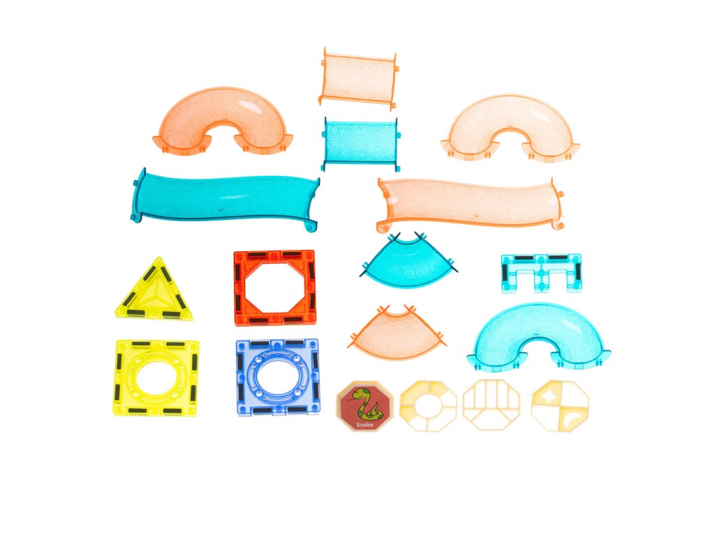 Některé z kostek jsou spojeny magnety, díky nimž je celá stavba zábavnější.Díky čemuž je celá stavba robustnější. Zbytek kostek, které slouží jako tunely, se umisťuje "stisknutím".