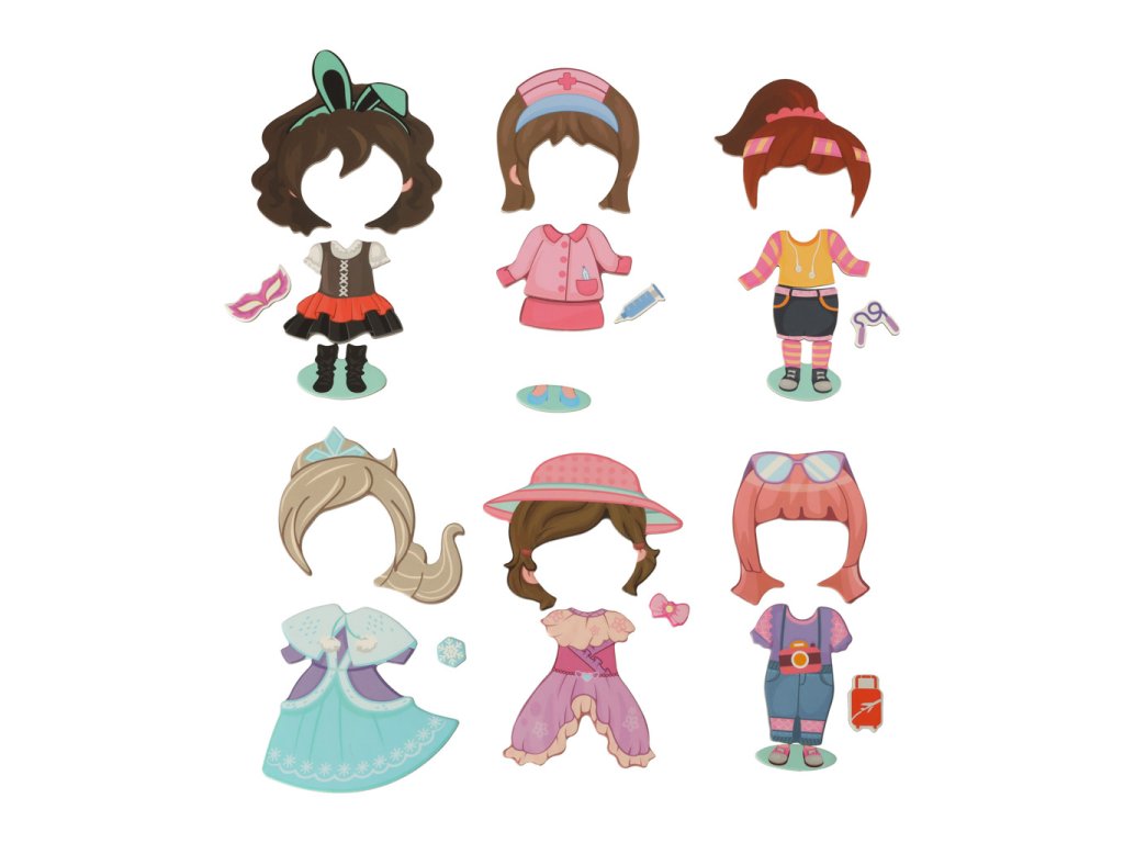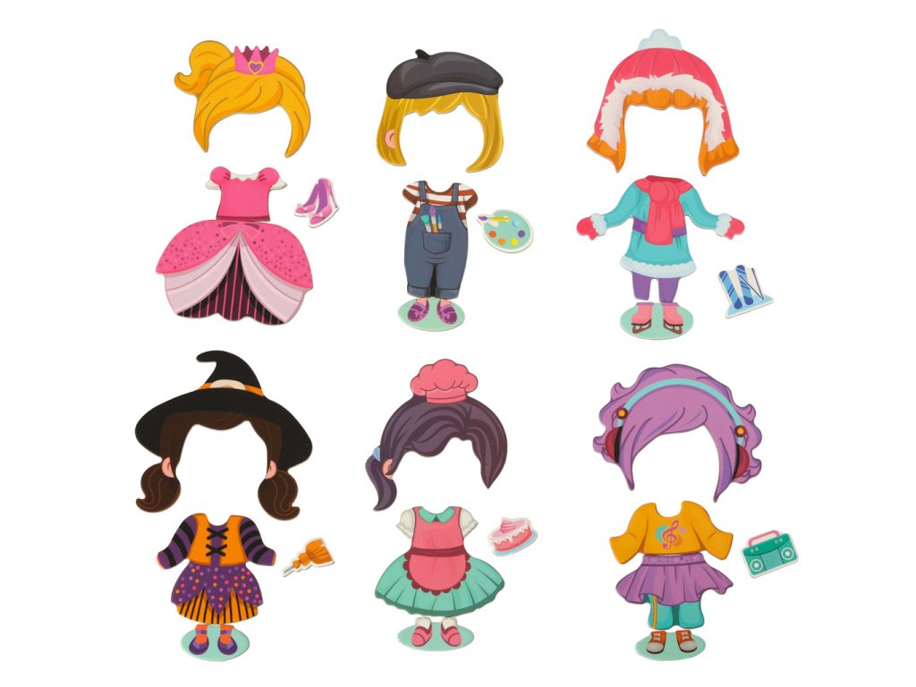 Pravidla používání hračky jsou velmi jednoduchá! Stačí otevřít obal tak, aby deska představovala dívku, a přidat magnetky s oblečením podle vlastního výběru!
