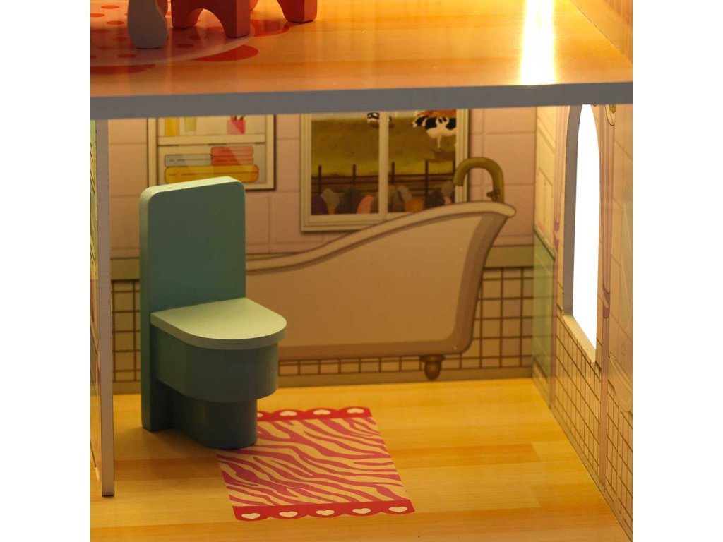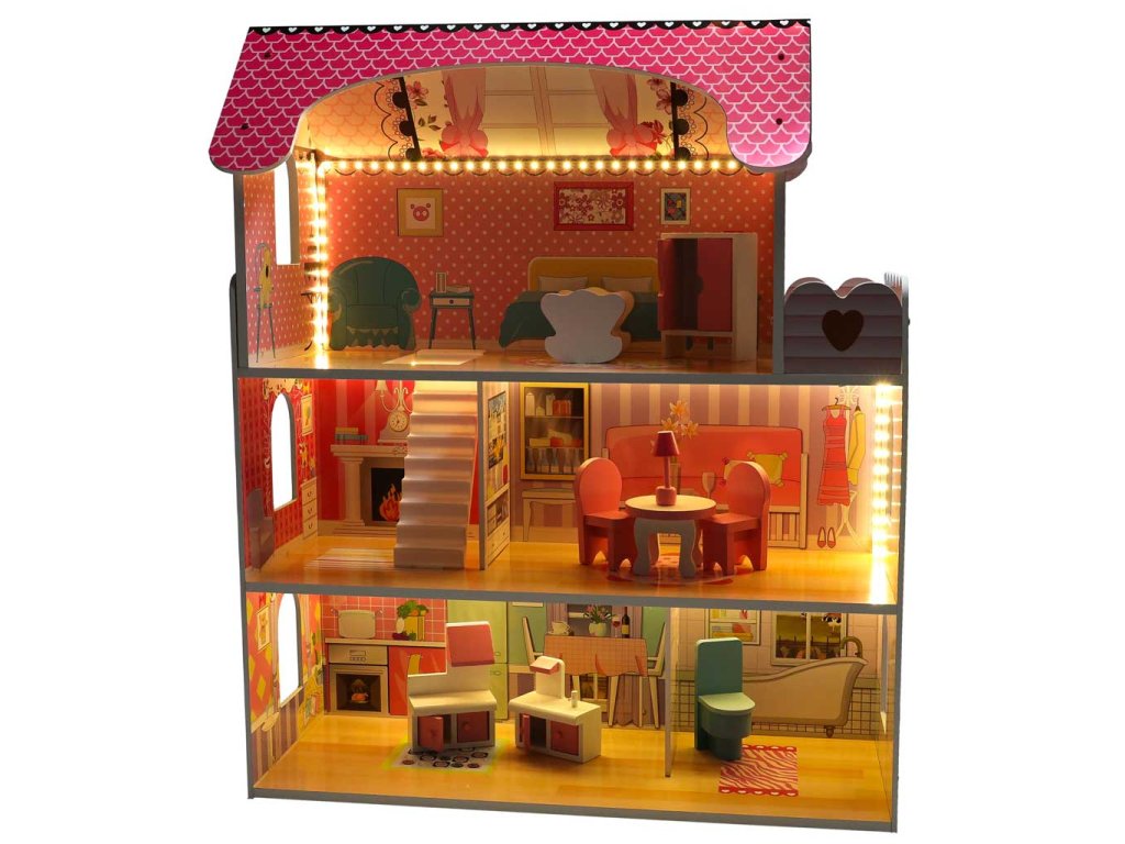 - OSVĚTLENÍ LED - Domečky pro panenky jsou vybaveny působivým LED osvětlením, které nejen skvěle vypadá, ale lze ho použít i jako noční lampičku. Světla jsou umístěna na lepicí pásce, kterou stačí nalepit na stropy a stěny domu. Světla lze připevnit libovolným způsobem. Napájení bateriemi AA (nejsou součástí dodávky).