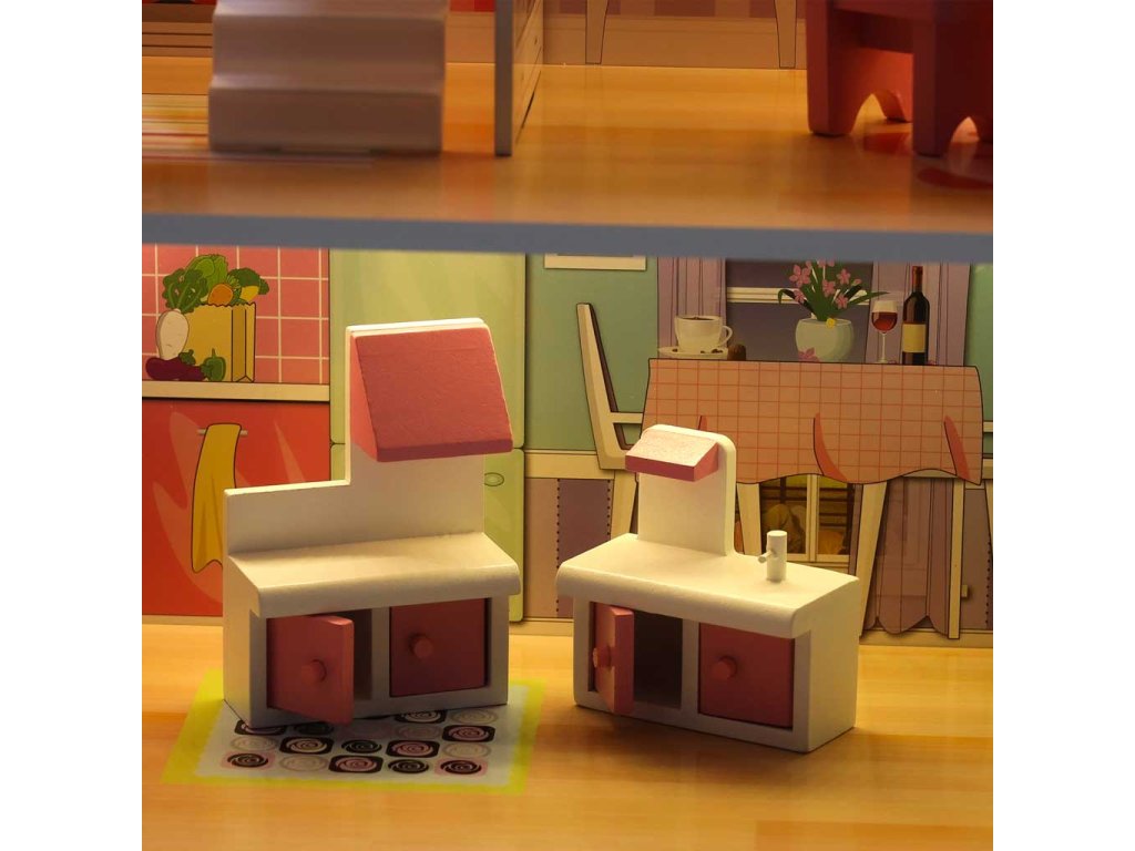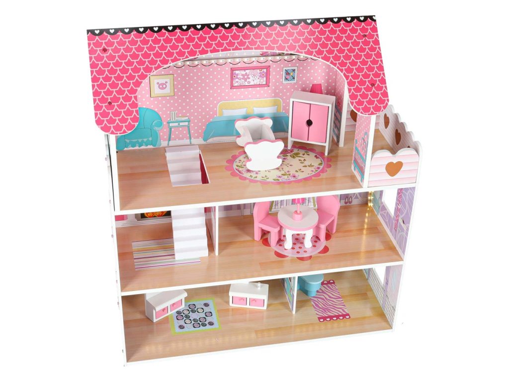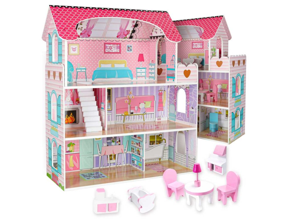 - ESTETICKÝ VZHLED A PEVNÁ KONSTRUKCE. detaily v podobě miniaturního nábytku a barevné grafiky potěší a dělají domečky pro panenky jedinečnými.