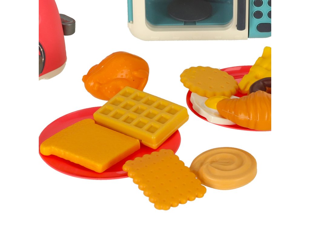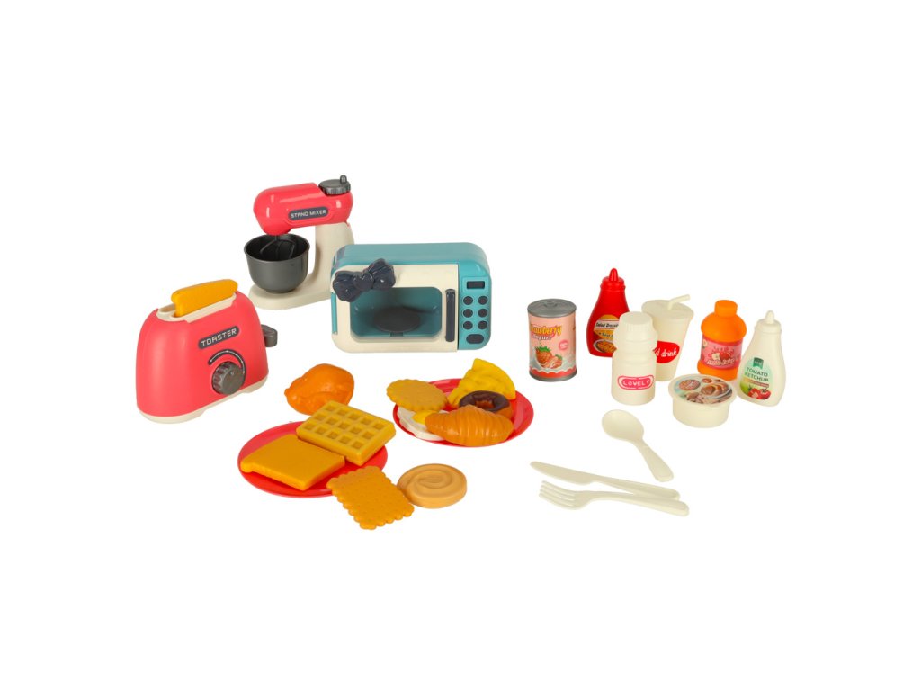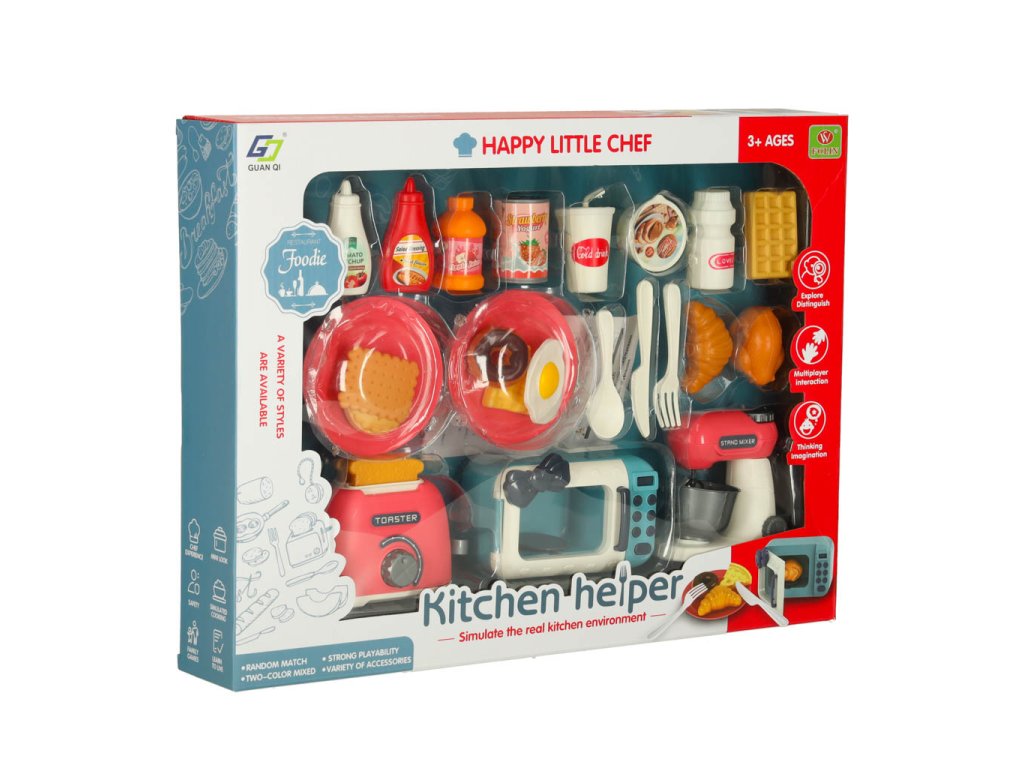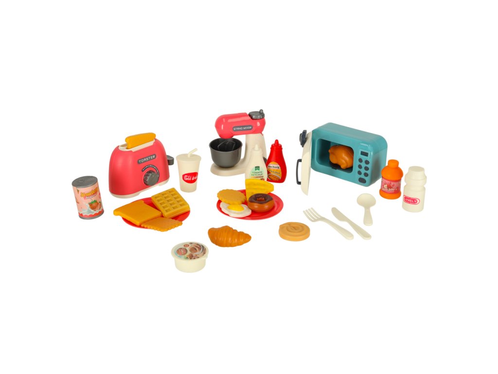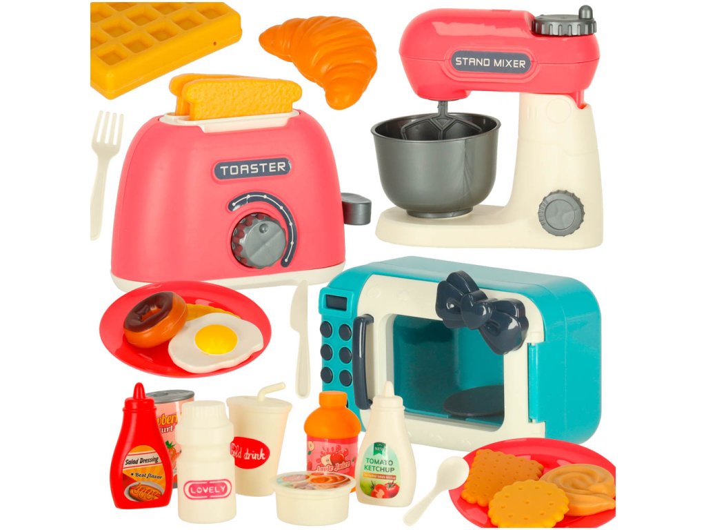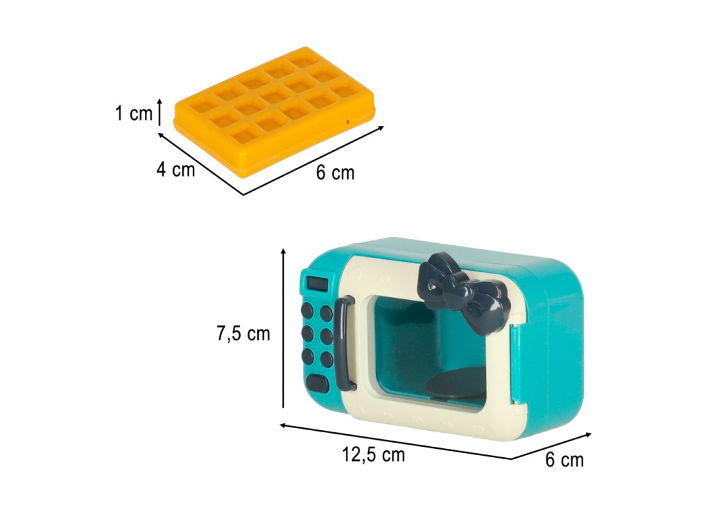 Topinkovač, mixér a mikrovlnná trouba + mnoho dalšího příslušenství, které zaručí super zábavu! Hračka naučí opatrnosti v kuchyni zábavnou a bezpečnou formou. Bude stimulovat představivost a rozvíjet manuální dovednosti. Rozměry mikrovlnné trouby: Rozměry mikrovlnné trouby: 12,5x7,5x6 cm.