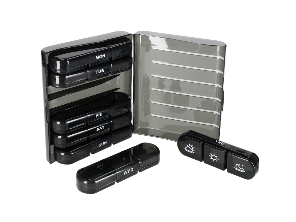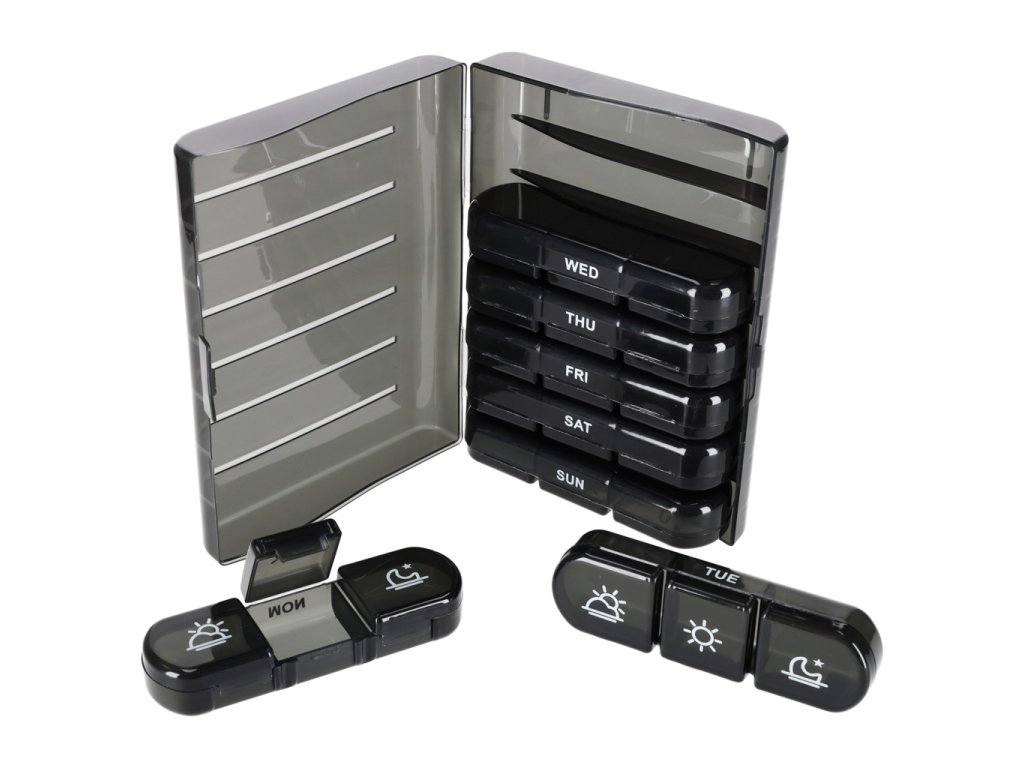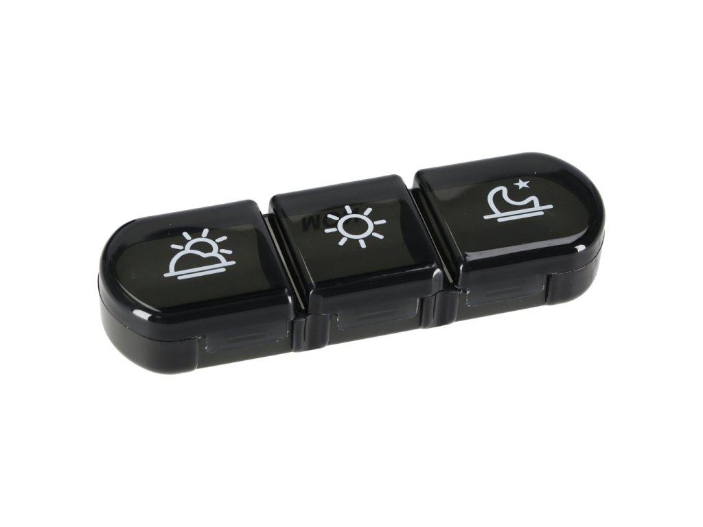 Je to pohodlné řešení pro seniory, ale i pro ty, kteří chtějí mít přehled o dávkování léků a denním příjmu doplňků stravy. Bezpečný uzávěr na patentku chrání tablety a kapsle před vysypáním a odolný plast zajišťuje dlouhodobé používání bez obav z rozbití.