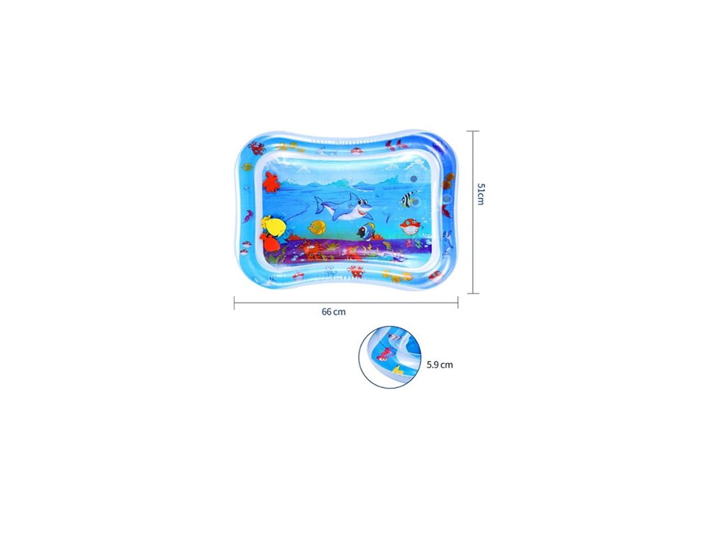 Bezpečná a pohodlná podložka na hru, či odpočinek. Děti zaujme s pomocí vody a rozmarnými pohyby vodních zvířátek uvnitř podložky, v poloze na bříšku podporuje u dětí zádové svaly, svaly na nohách, na rukách i na krku.