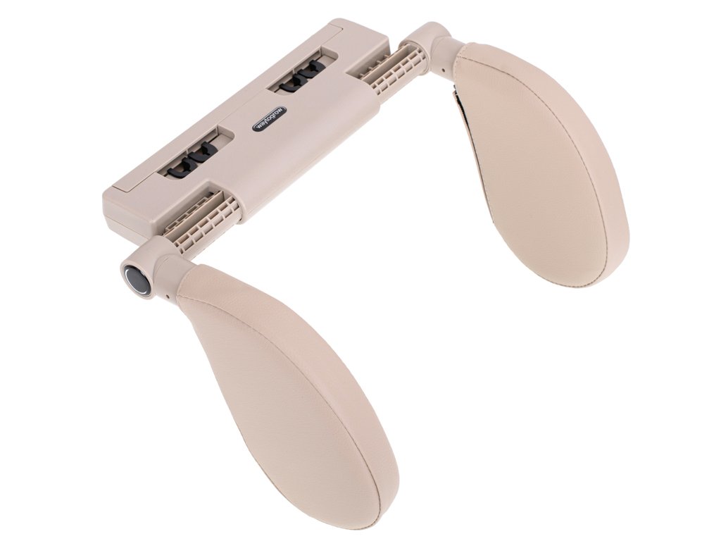 Je vybaven dvěma nezávislými rameny, která lze zvednout nebo spustit o 180 stupňů. Měkké polštáře umístěné na bocích poskytnou mimořádné pohodlí při cestování. Nemusíte ležet v nepohodlné poloze, opírat si hlavu o sklo nebo pás a riskovat zranění. Opěrka hlavy podepře vaši hlavu a měkký polštář vám umožní relaxovat.